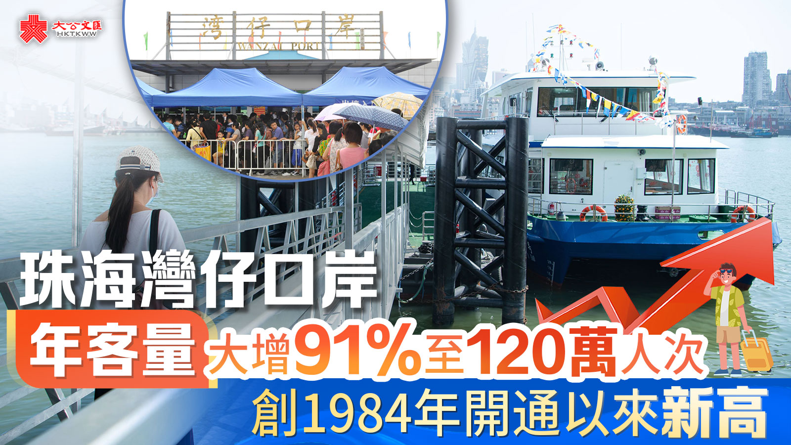 (大公文匯網 記者 方俊明)作為澳門連接珠海最便捷的海上通道,灣仔口岸近年客流量持續增加。記者今天(2日)從珠海邊檢總站灣仔邊檢站獲悉,灣仔口岸在2023年全年出入境旅客量已突破120萬人次,同比大增91%,創下該口岸1984年開通以來年出入境旅客查驗量新紀錄。