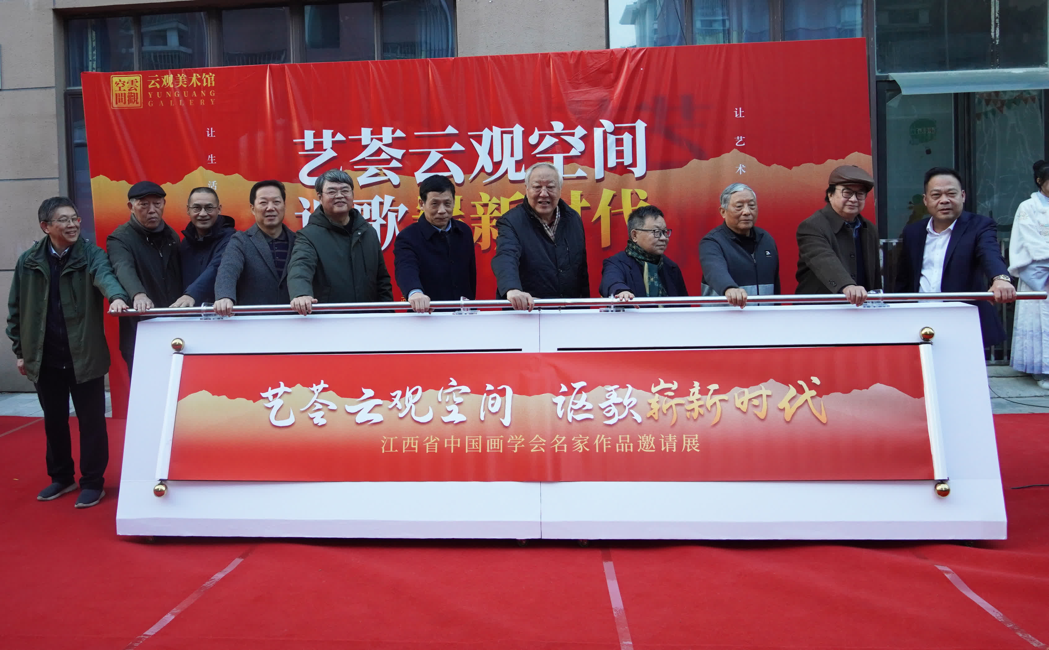 江西省政協原副主席、江西省美協名譽主席、江西省中國畫學會名譽會長王林森,江西省人大常委會委員、省人大環境與資源保護委員會副主任委員梅毅,中共江西省委宣傳部原巡視員、江西省中國畫學會顧問劉元敏,江西省文聯原副主席、省美協名譽主席、江西省中國畫學會會長蔡超,中煙江西公司原黨組成員、副總經理、江西省中國畫學會副會長趙明強,南昌市政協原副主席羅文華,中國美協策展委員會委員、江西省美協原駐會副主席、江西省中國畫學會執行會長李暉,江西省政協常委、江西畫院原院長、江西省美術館原館長劉楊,江西省畫院原副院長方學曉,江西廬山畫院原院長楊豹,深圳市先達威環境產業有限公司董事長、雲觀美學館投資人劉森共同推桿,啟動邀請展。王林森宣布展覽開幕。李暉、劉森為江西省中國畫學會雲觀美學空間交流中心揭牌。