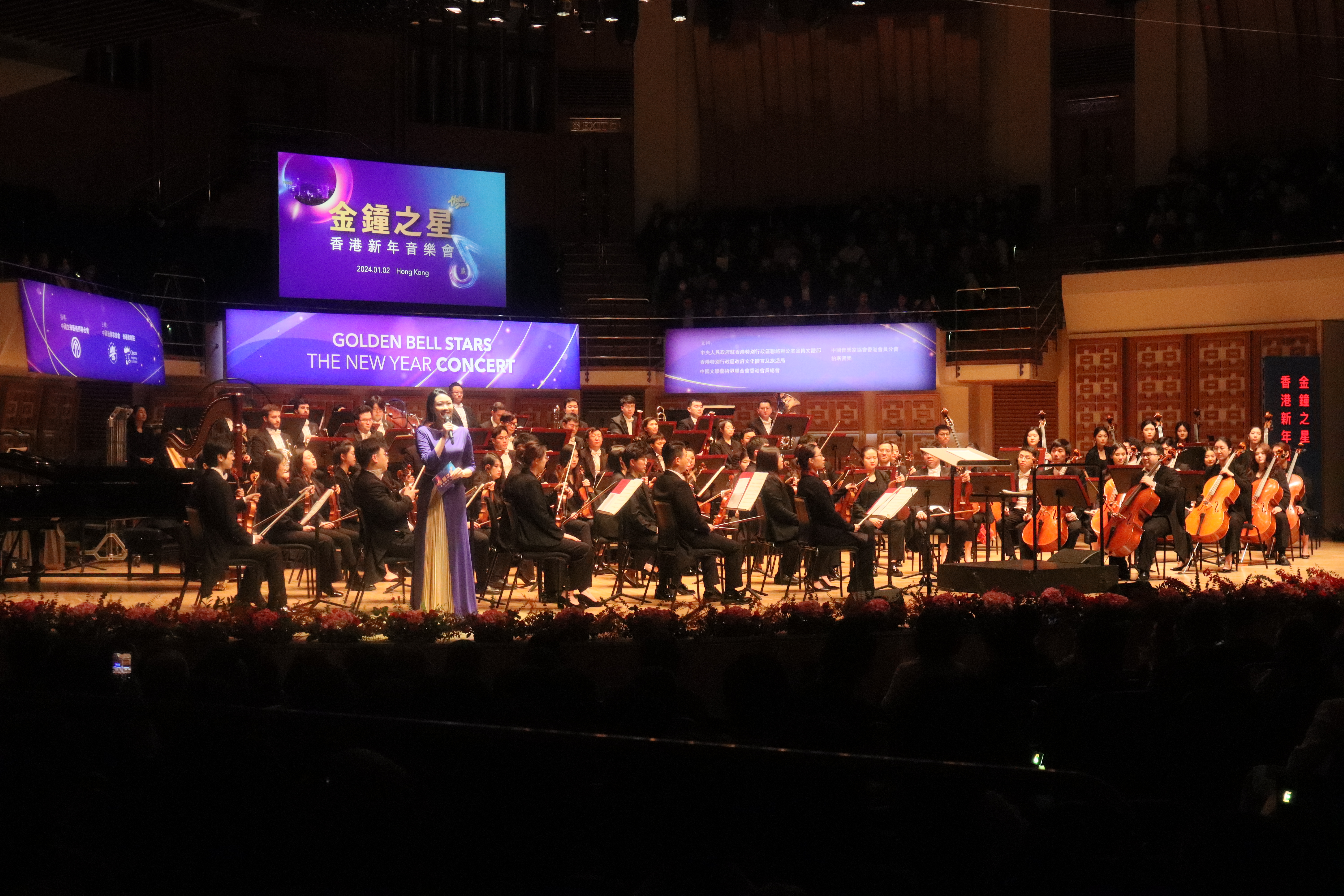 (大公報 記者 顏琨)「金鐘之星」香港新年音樂會於今晚(2日)在香港文化中心音樂廳舉行,現場星光璀璨、樂聲悠揚、掌聲不斷。此次音樂會由中國文學藝術界聯合會指導,中國音樂家協會、香港歌劇院共同主辦,指揮家陳琳執棒中央音樂學院交響樂團,聯袂廖昌永、莫華倫、石倚潔、王慶爽、江洋、劉艷花、譚天樂、程皓如、黨華莉、徐曉晴、高白、李哲翔等兩地音樂家,以一場音樂盛宴獻上濃濃新年祝福,唱響內地與香港共奮進、向未來。