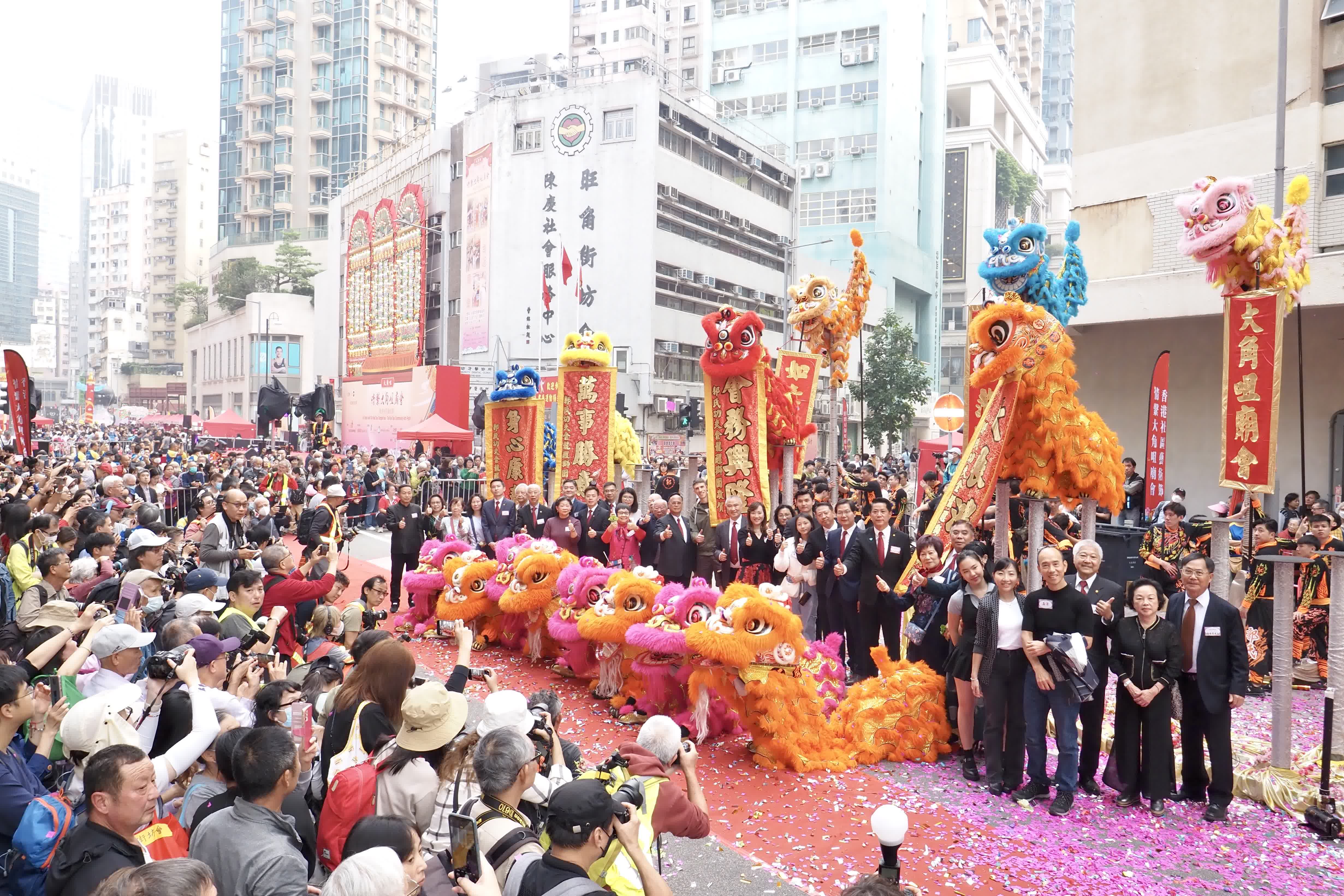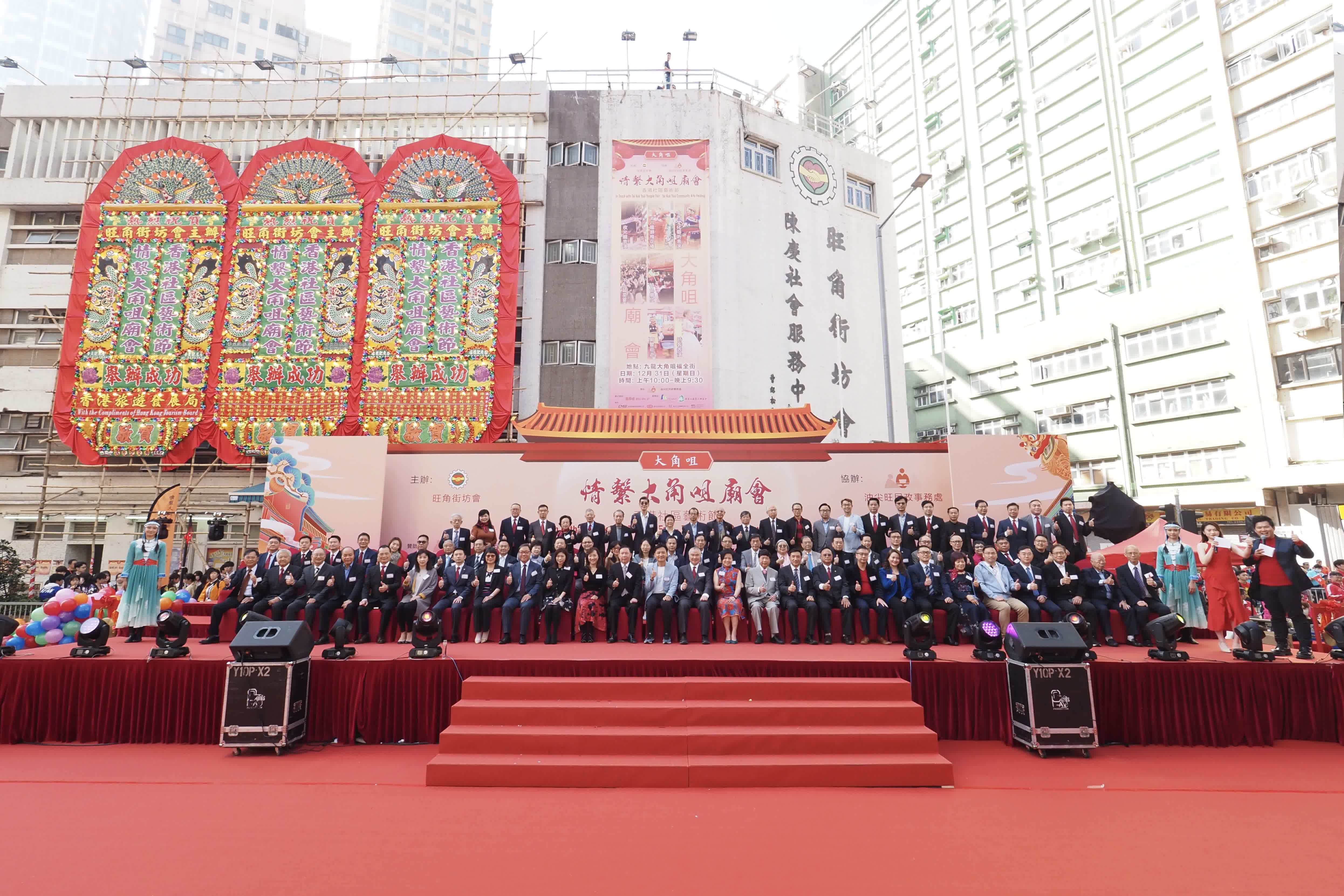 大角咀廟會12月31日於香港大角咀福全街舉行。旺角街坊會主席梁華勝聯同立法會議員鄭泳舜、文化體育及旅遊局常任副秘書長郭黃穎琦、廣州巿海外聯誼會副會長劉國強、蘇州巿海外聯誼會副會長鄧兵、中央政府駐港聯絡辦九龍工作部副處長鄧愛萍等主持開幕禮。