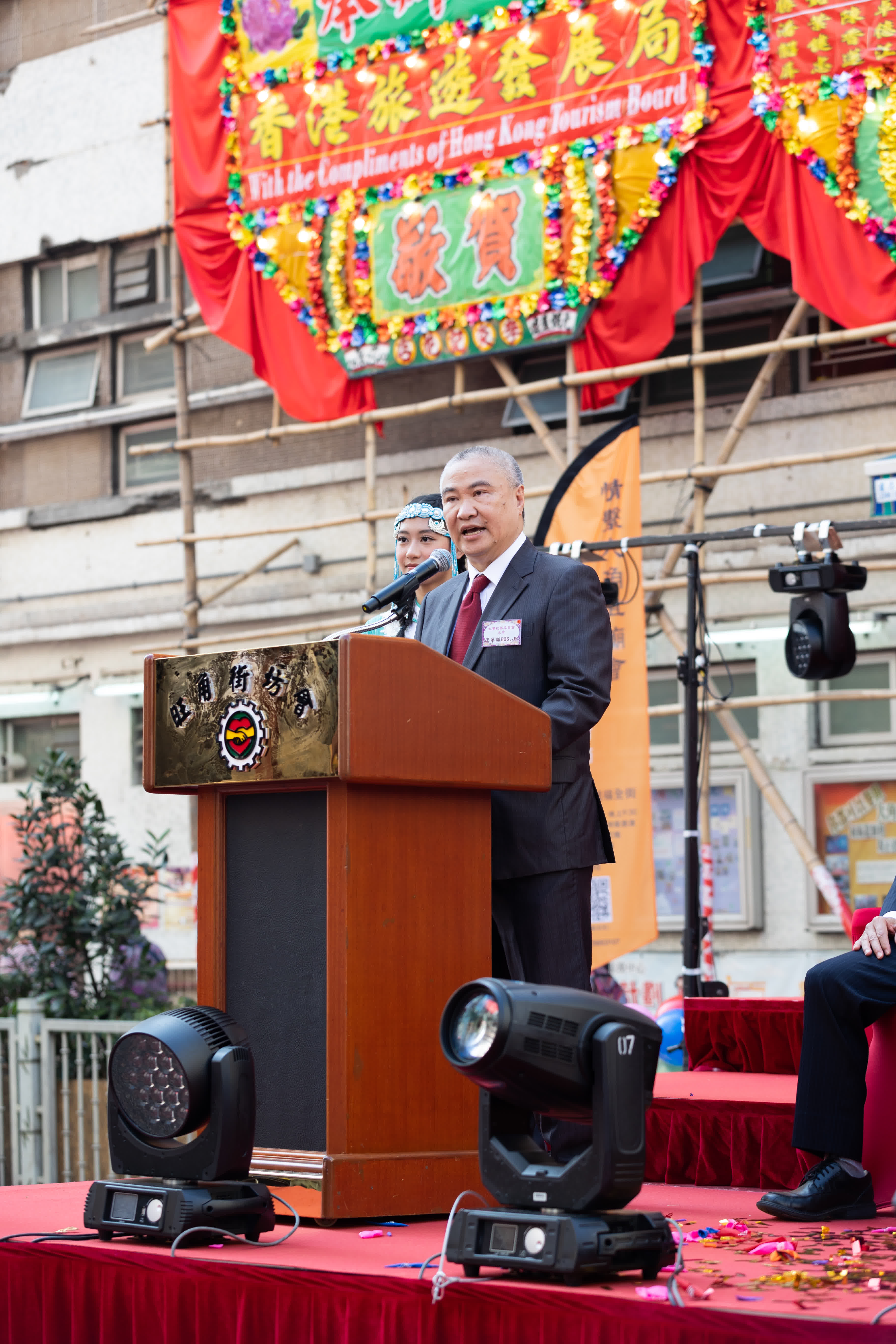 他繼續指出,旺角街坊會作為一個地區服務團體,是巿民與政府的合作平台,對青年人才充份關注,除致力廣納賢能,加入該會積極參予地區工作,齊心協力共同解決社區問題,更舉辦各項活動邀請年青人參與,今晚將有一條500呎特色LED龍作壓軸表演,會由接近一千位香港年青人參與演出,給予一個年青人施展才華、追逐夢想的廣濶舞台。大角咀社區作為香港的傳統社區,植根於深厚的歷史文化土壤,該會舉辦「情繫大角咀廟會·香港社區藝術節」活動,是以中西文化匯粹的香港社區為平台,期望透過傳統文化藝術的核心精神,向本地居民及海內外遊客推廣,為香港文化旅遊的品牌增添新標籤。