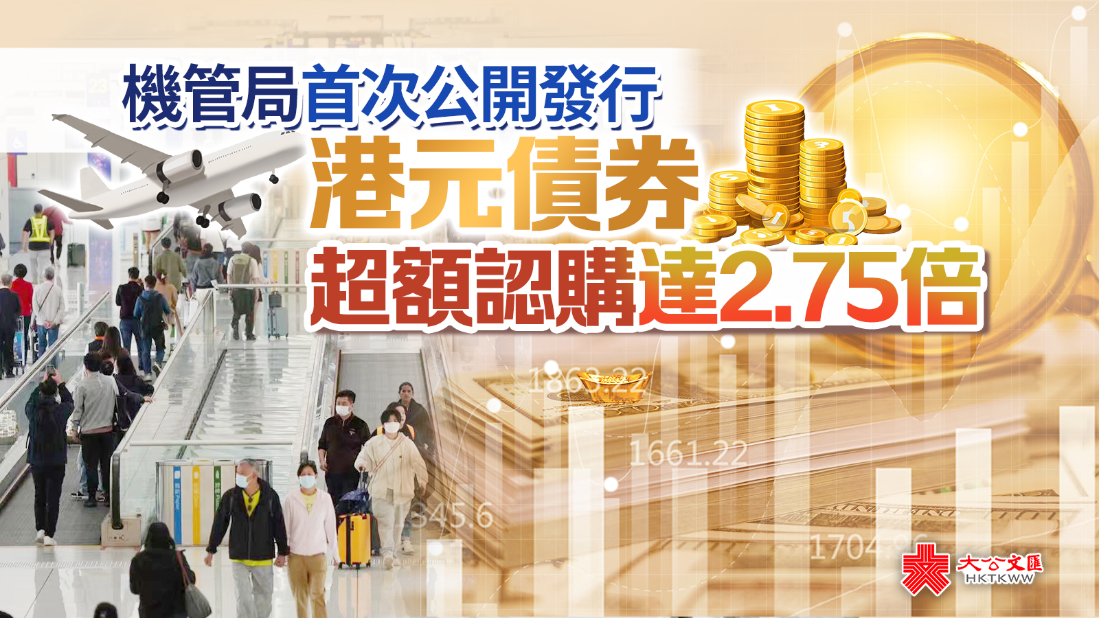 大公文匯全媒體報道,機管局首次公開發行港元債券,40億港元的高級票據昨日(2日)定價,年期3.5年,票面息率3.83厘。認購額超過110億港元,超額認購達2.75倍。機管局表示,票據預計本月9日發行,並估計可獲標準普爾評為「AA+」評級。