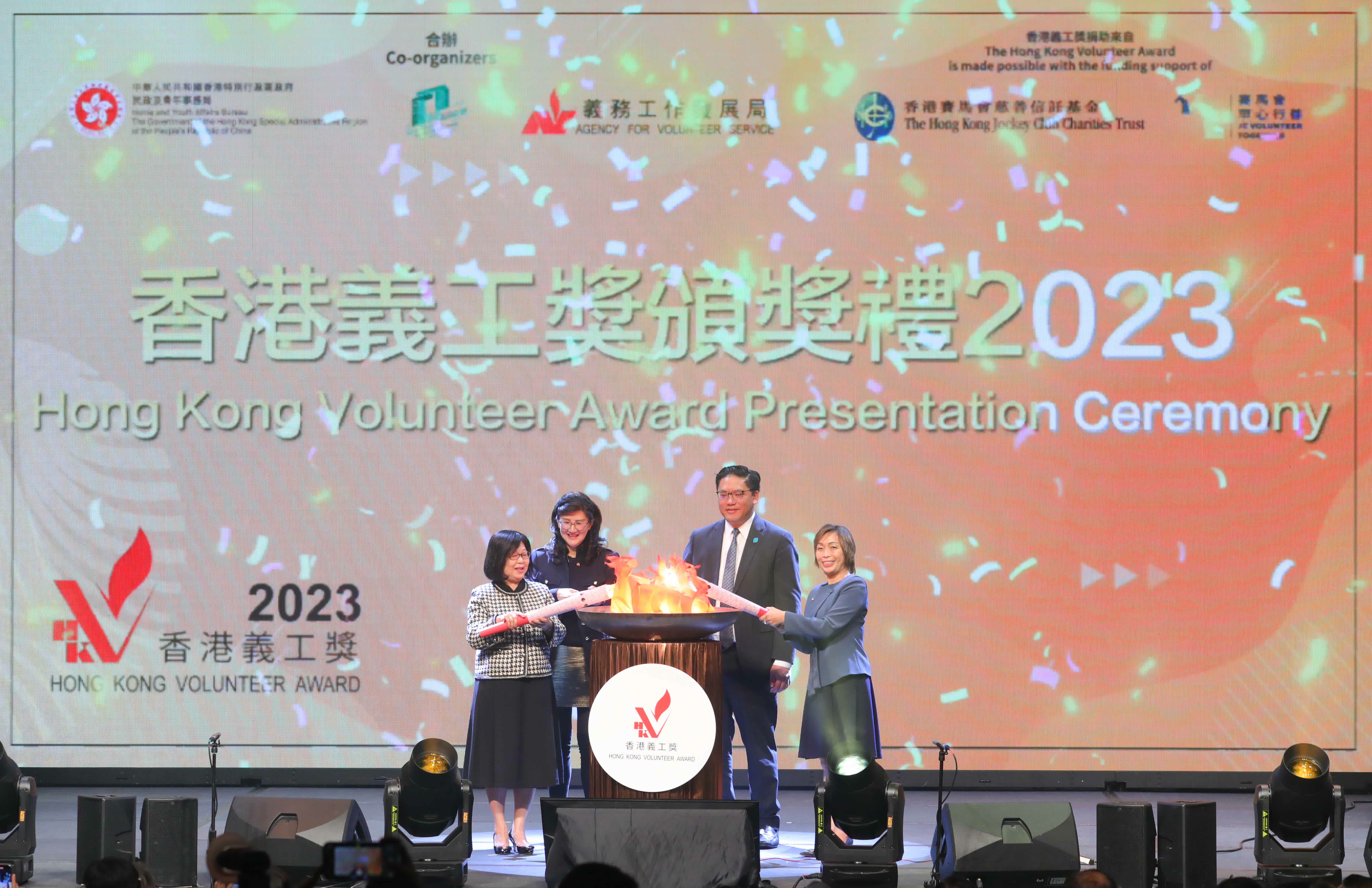 大公文匯全媒體報道,民政及青年事務局與義務工作發展局合辦的「香港義工獎2023」,於今日(3日)舉行頒獎禮,嘉許本地傑出義工及青年義工/團隊、企業、非商業機構、義工協作計劃獎、屋苑及學校,表揚他們對義務工作的貢獻和成就。行政長官李家超夫人暨義工總領袖李林麗嬋、民政及青年事務局副局長梁宏正、香港賽馬會董事龔楊恩慈和義務工作發展局主席彭韻僖律師擔任主禮嘉賓。