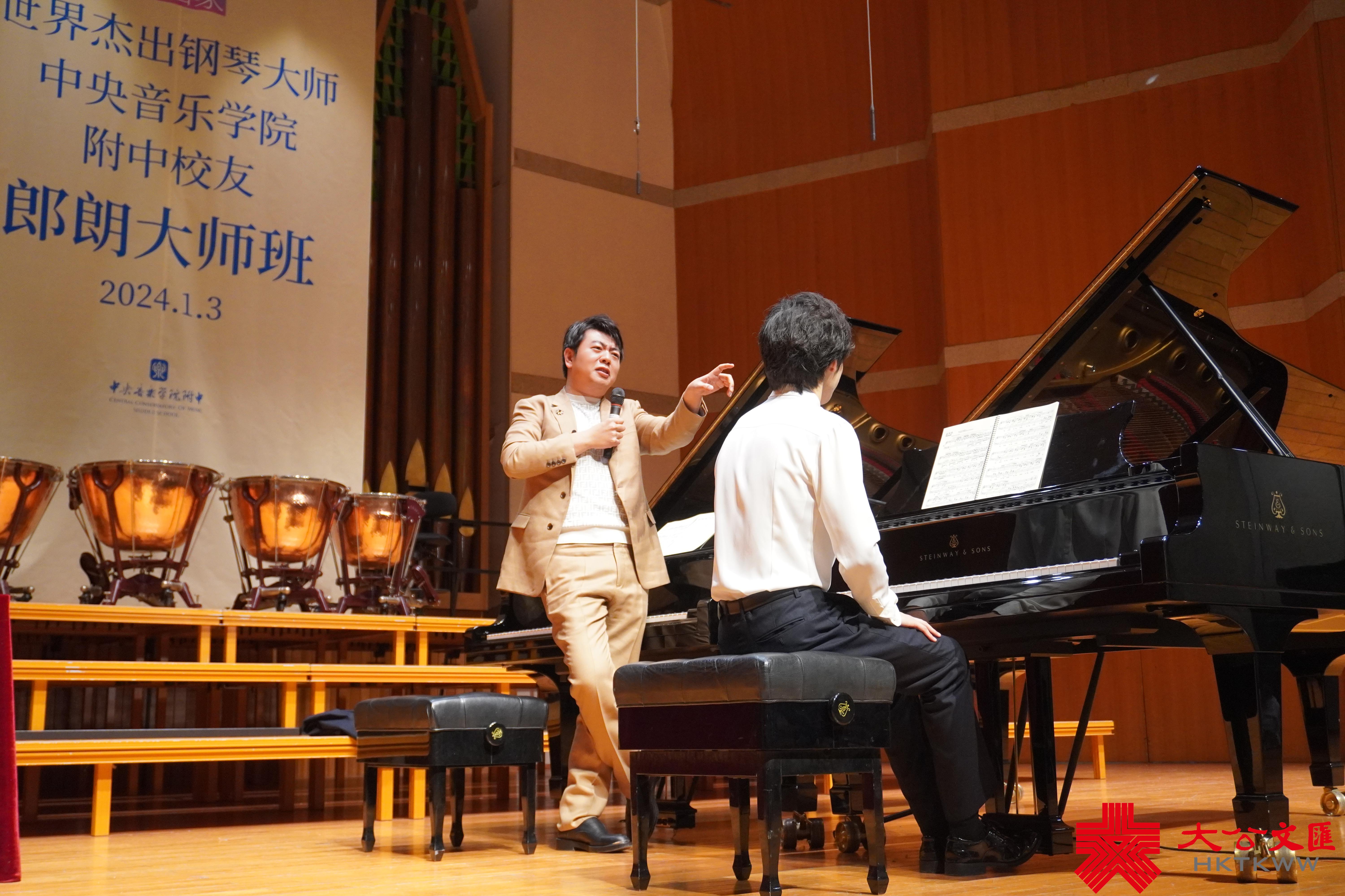 (大公文匯網記者 馬曉芳 北京報道)世界傑出鋼琴大師郎朗3日下午重返母校中央音樂學院附中舉辦大師班,受到師生們的熱烈歡迎。郎朗現場聆聽指導了六位來自中央音樂學院附中學生的鋼琴表演。在近四個小時時間裏,郎朗一對一面對面,從彈奏技巧、節奏方面給予學生們細緻指導。指導過程中,郎朗言傳身授,再現了國際鋼琴大師的激情魅力。