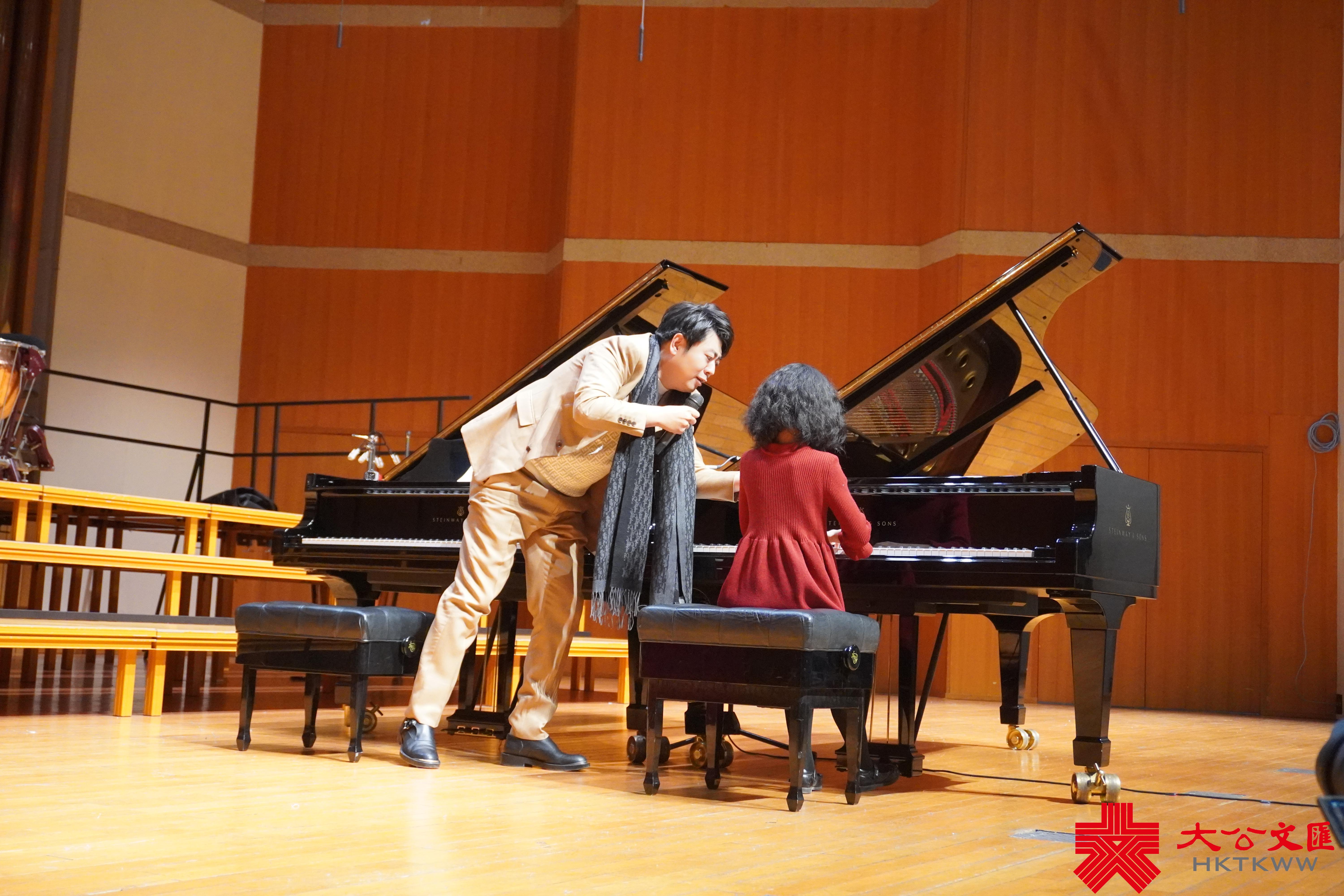六名在郎朗大師班演奏的學生分別來自小學、初中、高中。「左手放鬆……後面給點低音……非常好!」「這是一首狂歡的曲子,這裏要稍微多一點,太弱了。」郎朗在聽完學生們的演奏後親身示範,從彈奏技巧和對樂曲理解上一對一指導。郎朗在指導過程中的激情和表現力也感染了演奏的學生們,受指導學生紛紛表示受益匪淺。作為國際鋼琴演奏大師,郎朗演奏風格多樣,手速非常快,指導過程中幽默詼諧、深入淺出,引來場下陣陣掌聲。