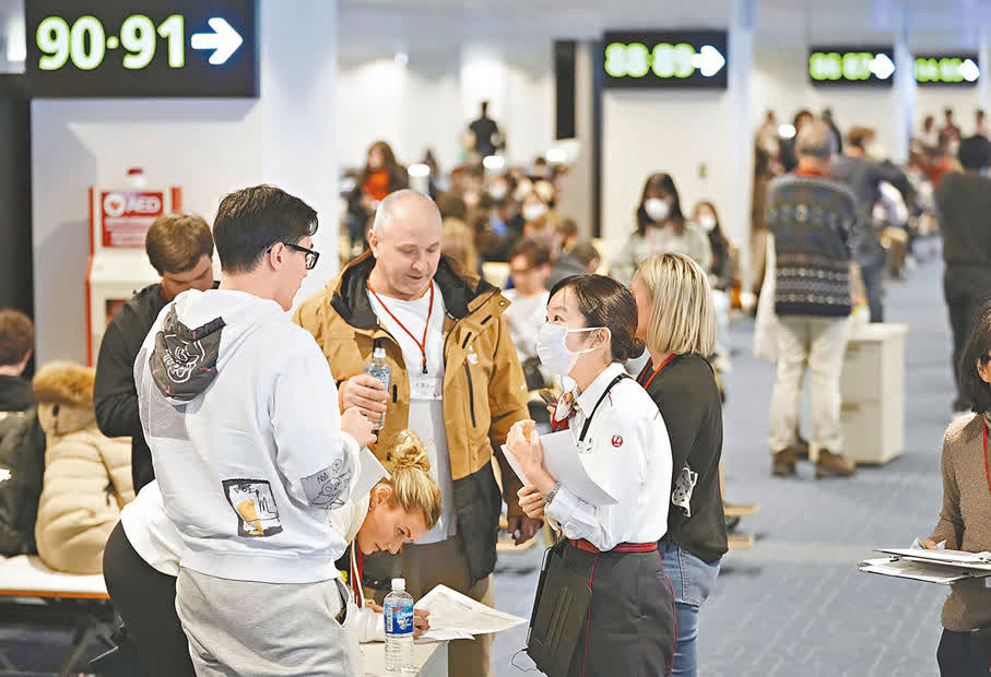 受羽田機場飛機相撞事故影響,日本各地截至周三(1月3日)約有200班國內線航班取消或延誤,大批遊客行程受阻,在機場「打蛇餅」安排更改機票事宜,不少遊客只能在機場過夜。日本航空及全日空預計事故影響約兩萬名乘客出行,不排除取消更多航班。