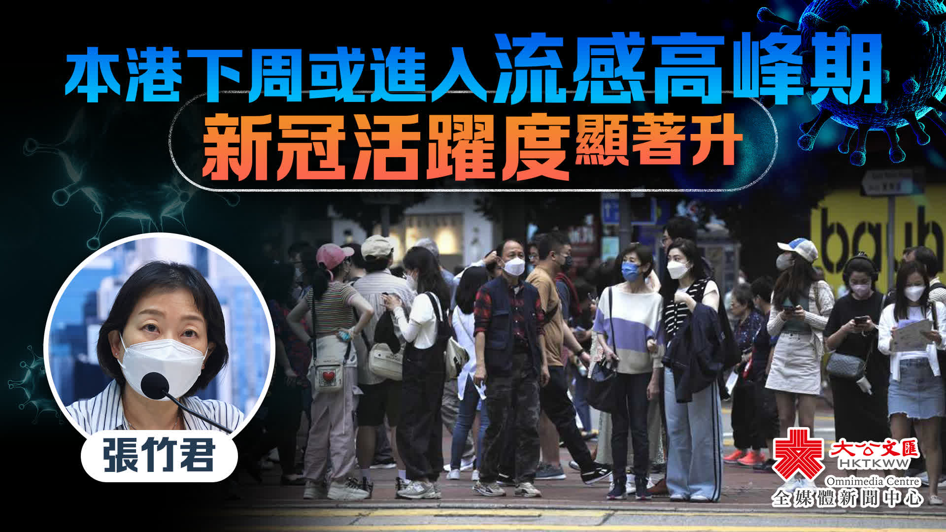 大公文匯全媒體報道,香港流感及新冠感染數字增加,衞生署衞生防護中心傳染病處主任張竹君今日(4日)表示,香港預計最快將於下周進入流感高峰期,新冠病毒轉趨活躍,呼籲高風險人士盡快接種流感及新冠疫苗。