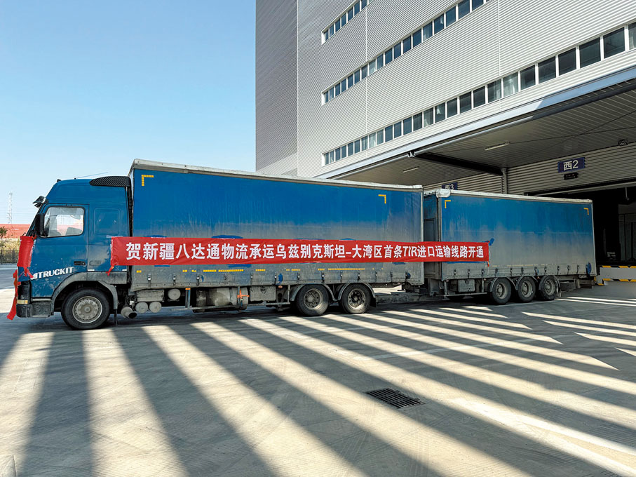 這也標誌着粵港澳大灣區首條TIR國際公路進境通道開通。該通道是繼空運、海運、鐵運之後的大灣區與境外聯通的第四類國際通道,可實現全程不換車不換櫃、點對點、門對門運輸,為中亞地區優質原料直達大灣區提供更加高效便捷的物流通道,助力構建和優化國際供應鏈,加速大灣區與「一帶一路」沿線國家經貿往來與合作。