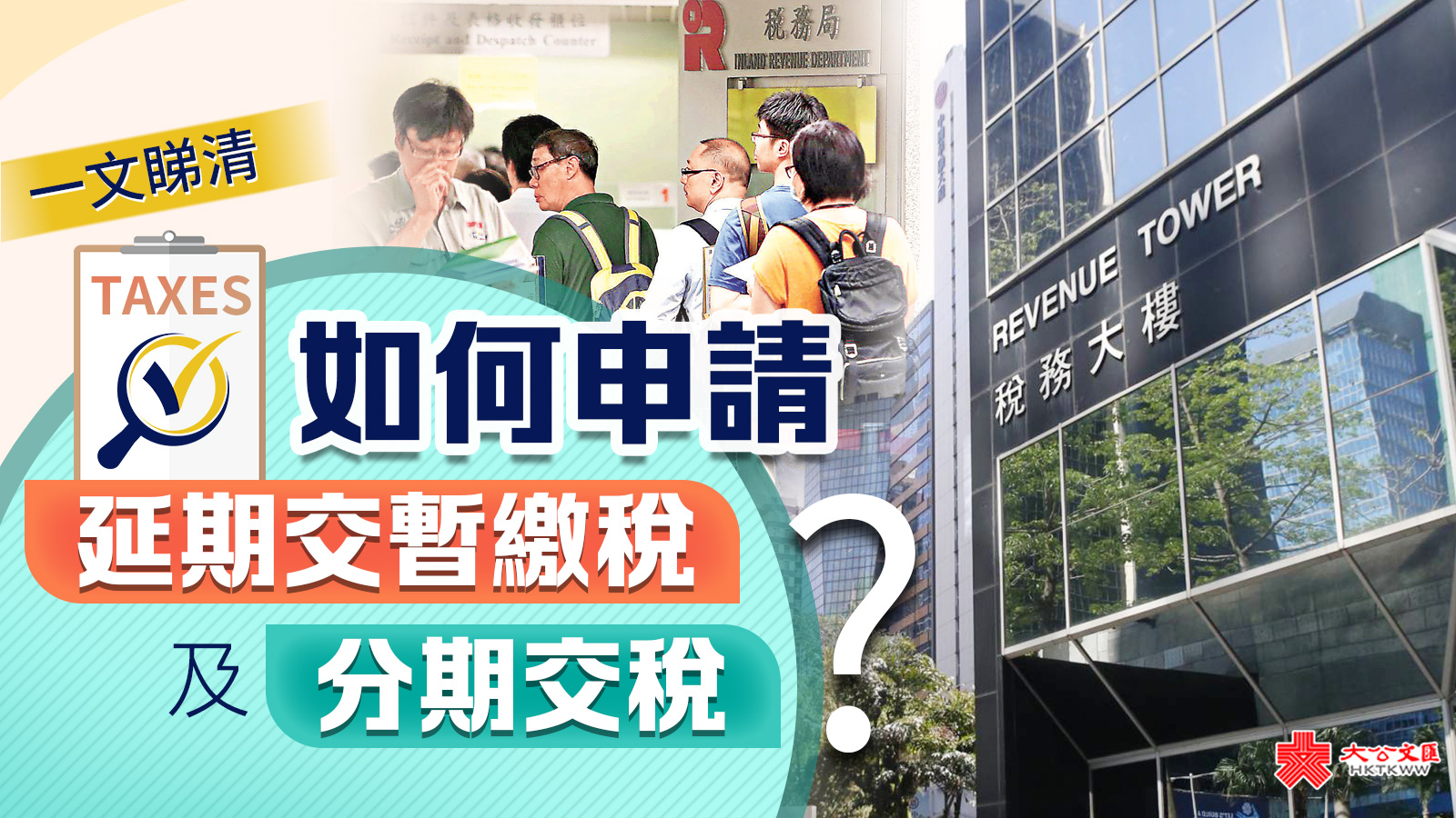 財政困難而未能在限期前清繳稅款的納稅人亦可以申請分期繳稅。稅務局一般會對限期前未清繳的稅款收不多於5%的附加費;若在限期日後6個月仍未清繳稅款和5%附加費,則會加徵不多過10%的附加費。分期交稅必須透過書面申請,不同身份的納稅人須填寫不同表格,所須文件可查詢稅務局網頁。申請人在準備好所有文件後,可透過傳真、郵寄及親身交表三種方式提交申請: