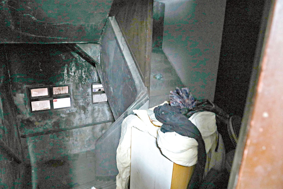 75歲的市民何先生在深水埗一間百多呎的劏房已居住5年,他的家庭情況是不少劏房戶街坊的縮影。一進入大廈,迎面是一整排、數十個電錶,可想而知樓內單位被改建成大量劏房,該大廈沒有電梯,主樓梯相對整潔,每層拐角位擺放垃圾桶,走火通道則被大量雜物佔據,顯然不符合消防條例要求。何先生擔心一旦起火,主通道有火情,樓上居民恐怕很難逃生。