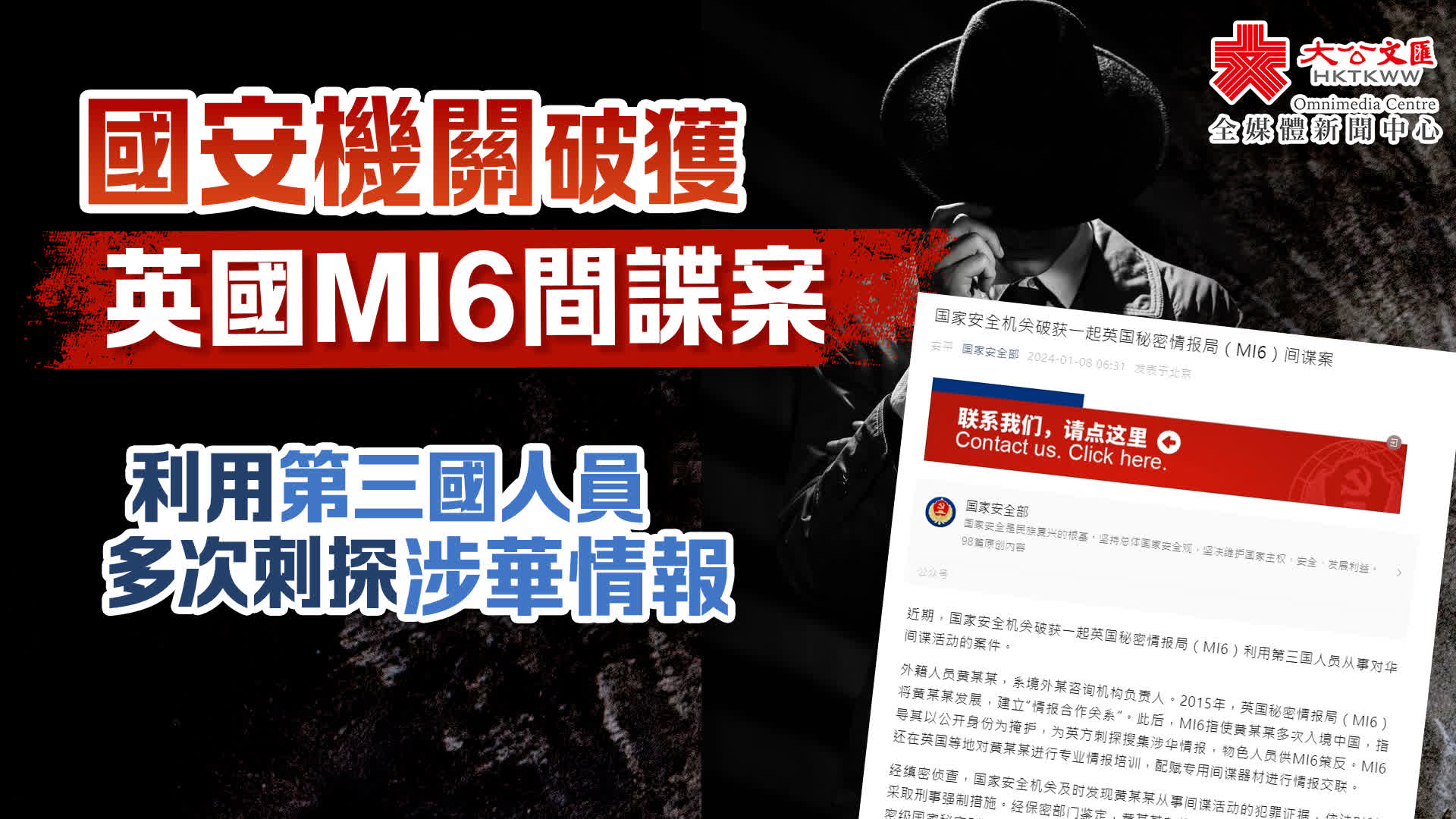 據國家安全部消息,近期,國家安全機關破獲一起英國秘密情報局(MI6)利用第三國人員從事對華間諜活動的案件。