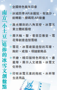 (香港文匯報 記者 吳千、王欣欣、于海江 哈爾濱報道)近日,持續火爆的黑龍江哈爾濱冰雪文旅成為網上熱搜,爆款頻出——滿大街移動的鏤空打卡「明信片」、一比一復刻的聖·索菲亞教堂糕點、象徵東北冬天的雪花首飾、東北大花布棉帽子,還有最出圈的會旋轉的雪花摩天輪和可以AR動畫展示的東北虎等創意文創產品不斷「霸屏」。微博上「爾濱的冰箱貼還帶AR動畫」的話題閱讀量自1月5日起火速飆升,兩天已累計突破625萬。