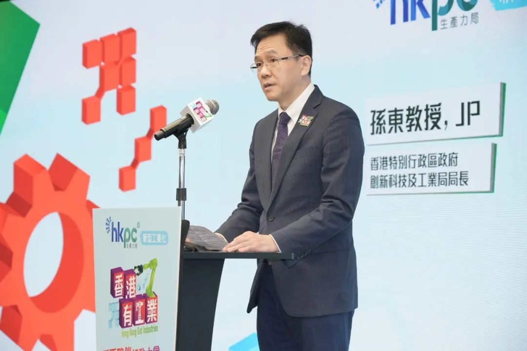 孫東致辭時表示,感謝生產力局超過半世紀以來致力於以先進技術和創新服務促進香港各行各業生產力所作出的貢獻,尤其近年來在推動「新型工業化」更是不遺餘力。他也很高興看到在生產力局以及資助計劃的幫助下,香港的企業通過科技賦能升級轉型,大力提高生產效能,使「香港製造」的品牌更加亮麗,同時展現香港推動「新型工業化」的成果。