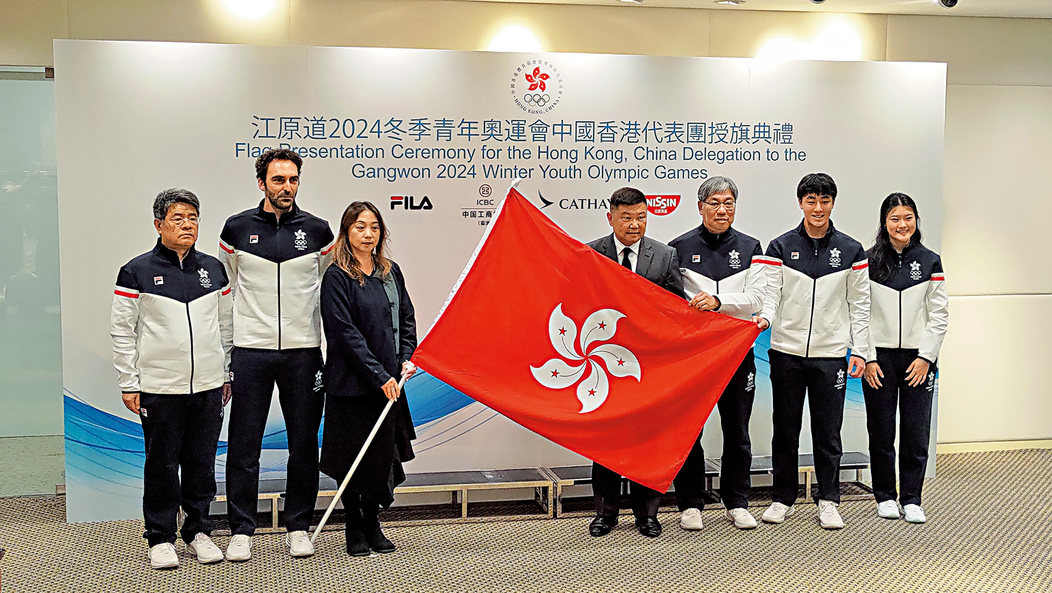 (大公報記者 張銳)2024冬季青年奧運會將於1月19日至2月1日在韓國江原道舉行,中國香港代表團派出3名16至17歲的青年運動員出戰高山滑雪和短道速滑項目賽事。中國香港體育協會暨奧林匹克委員會昨午於奧運大樓舉行授旗禮。參加男子高山滑雪的王智顥坦言會嘗試令自己不要太緊張,希望可以做到最好;參加女子高山滑雪的金和霖則表示不會設特定的成績目標,最主要是做好自己。