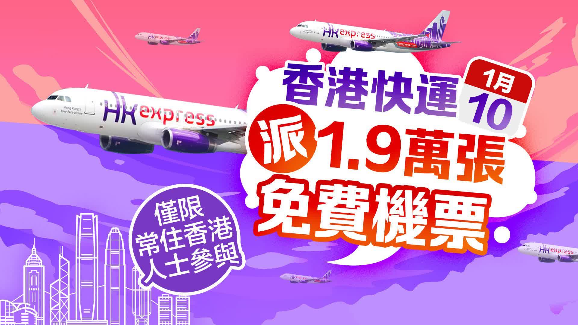 大公文匯全媒體報道,香港快運(HK Express)將於今日(10日)上午10時起至1月12日,以先到先得方式送出超過1.9萬張機票,由香港國際機場出發前往多個亞洲航點,只限「通常居住於香港人士」參與。