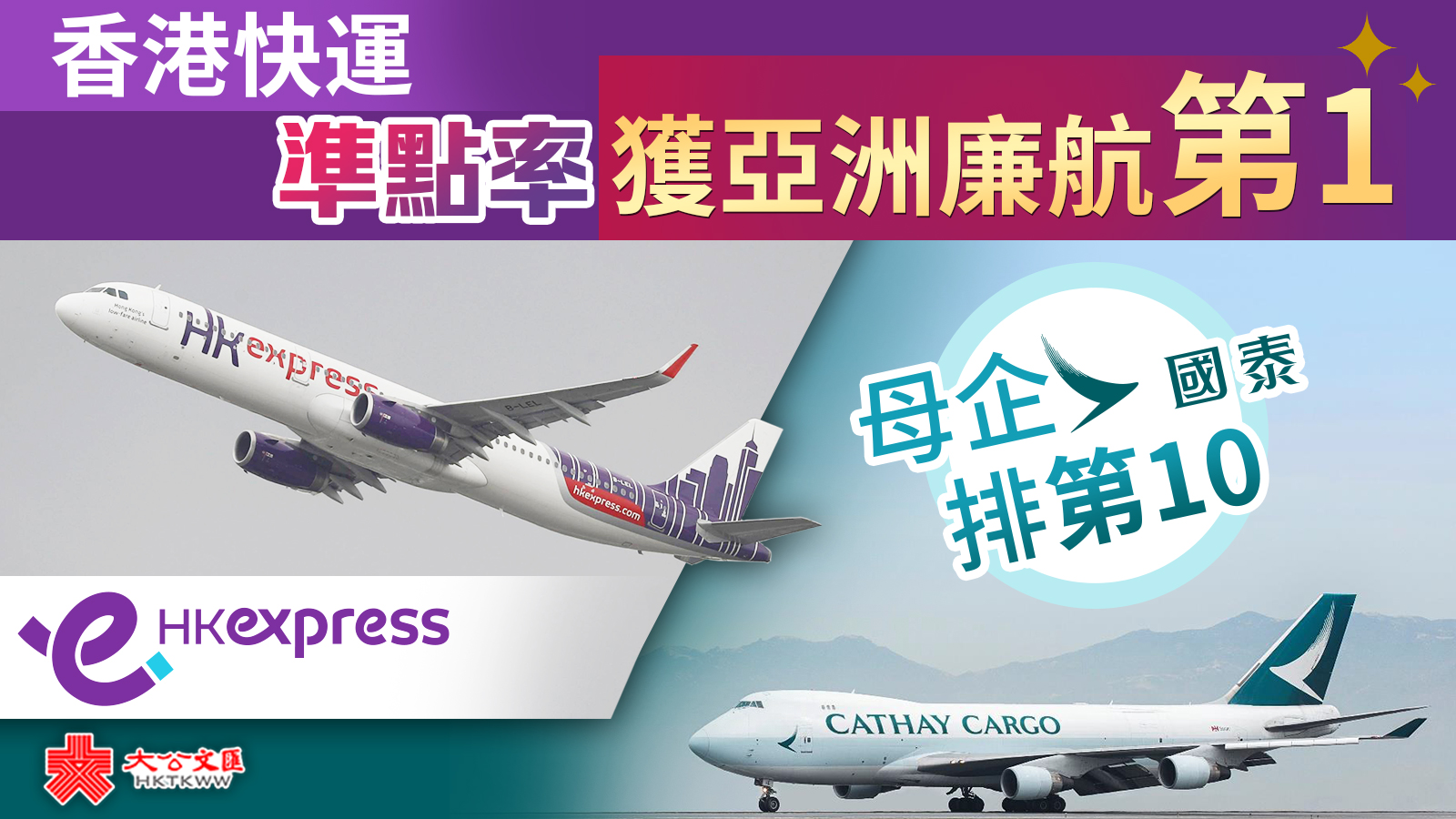 此外,香港快運母企國泰航空2023年準點率為76.23%,排行亞太區第十、大中華區航空公司中最佳,表現較區內平均73.51%為佳。
