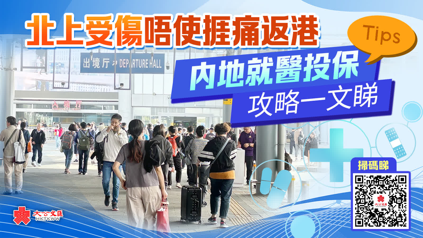 大公文匯全媒體報道,港人北上遊玩本是樂事,惟意外受傷如何處理令人摸不着頭緒。近日有報道指,一名港女北上深圳在一間著名水療中心跌倒,令韌帶撕裂需要做手術,對方只賠償一半手術費。在內地受傷是否要捱痛返港?港人如何內地就醫?是否需要購買外遊保險?大公文匯全媒體一文詳解港人內地看病那點事。