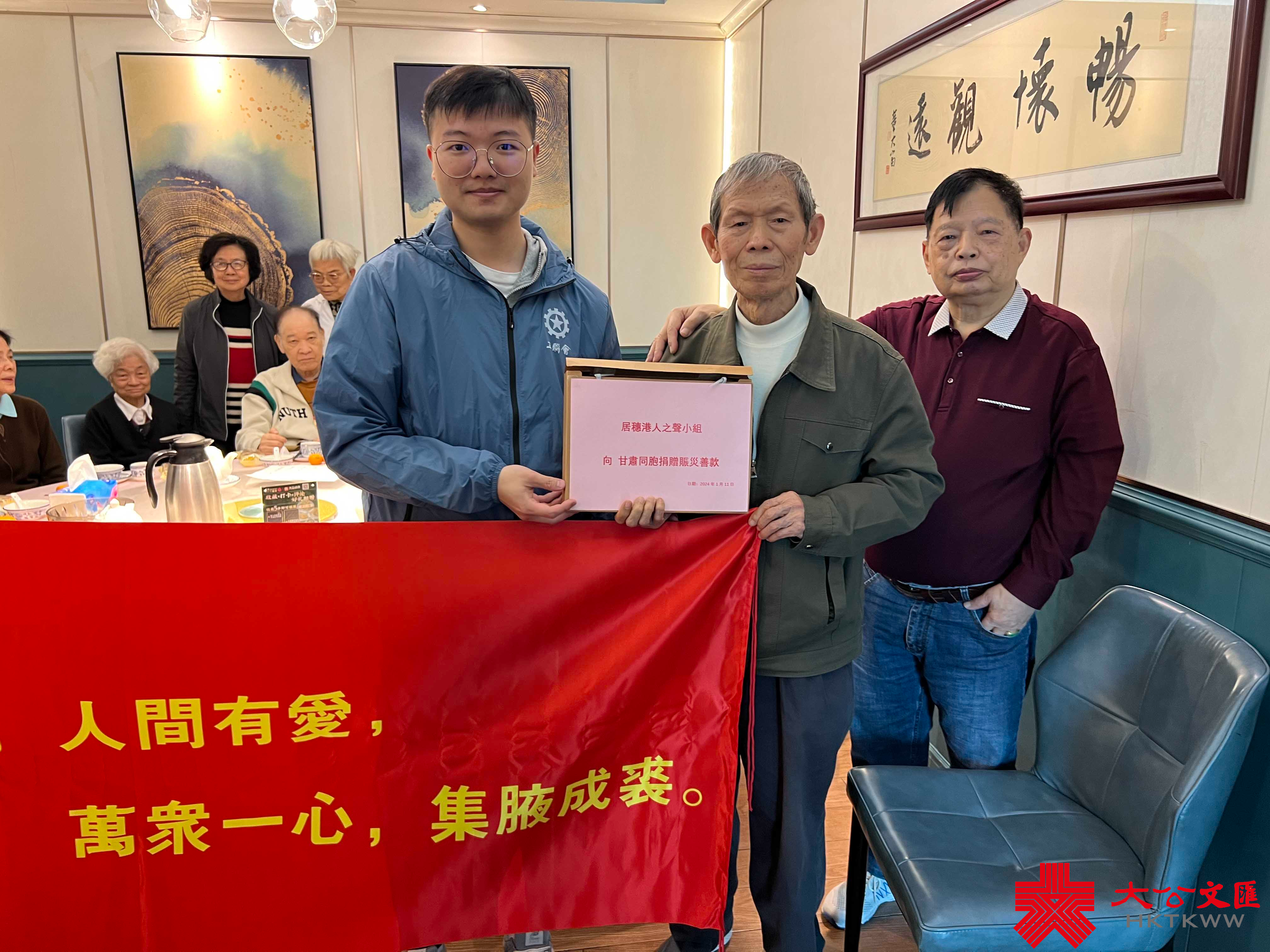 (大公文匯網記者 帥誠 廣州報道)1月11日,二十位在穗香港長者自發組織向甘肅地震災區捐款,由工聯會廣州中心統一收集後,經中央政府駐港聯絡辦轉交到甘肅省總工會,用於賑災。