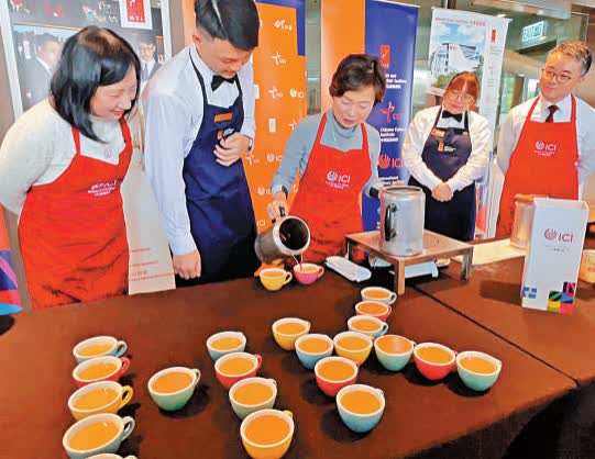 (大公報記者魏溶)教育局局長蔡若蓮、副局長施俊輝及常任秘書長李美嫦在昨日的傳媒午宴前,由三位VTC學生指導,嘗試沖泡港式奶茶;蔡若蓮更用奶和茶形容,稱香港應用科技人才和職業專才都是支撐香港的重要元素。