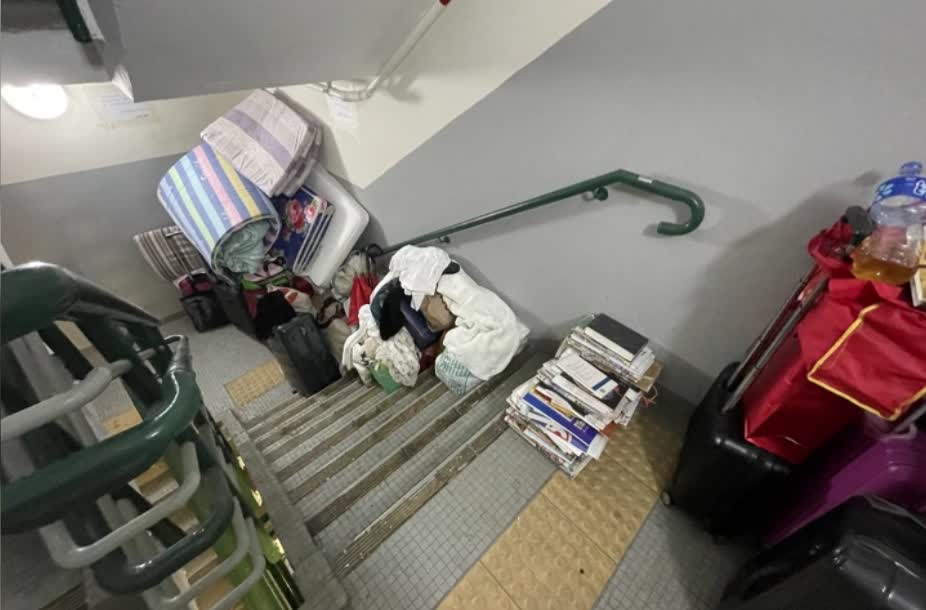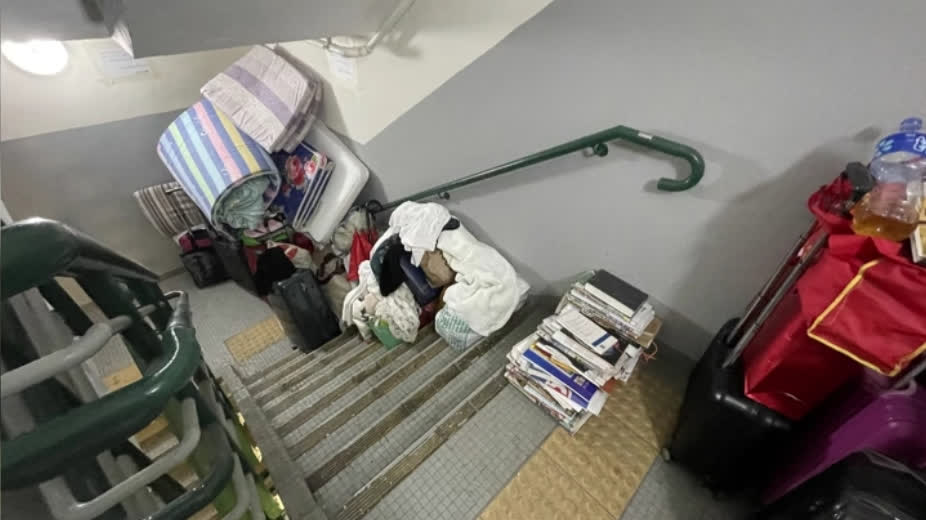 (大公報記者 盧剛昌)港島西區的石塘咀市政大廈近年出現一班怪客,他們除了將隨身行李、食物置於自修室枱面外,還將床褥、報紙、環保袋等雜物擺放在通道及梯間,除阻礙出入,更散發陣陣異味。大廈管理委員會雖貼出不准擺放物品告示,但未能收效,有職員無奈地表示,收到投訴時只能報警求助。