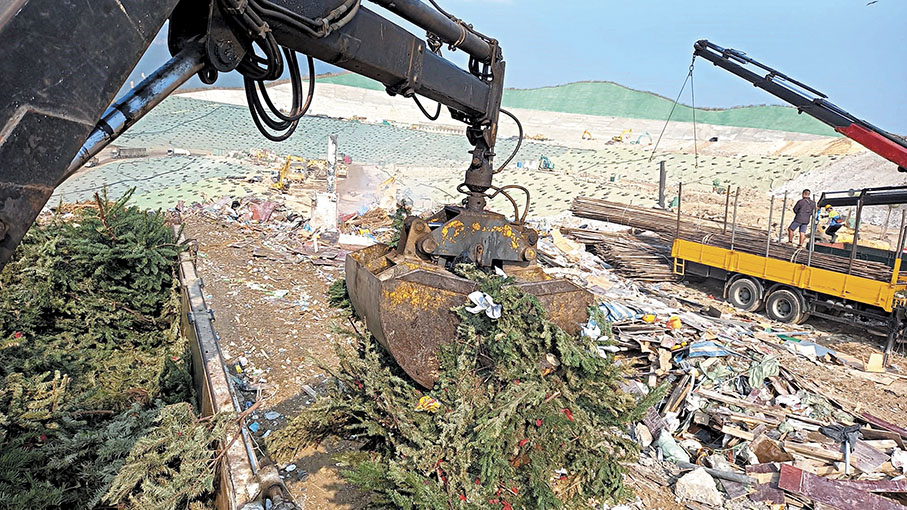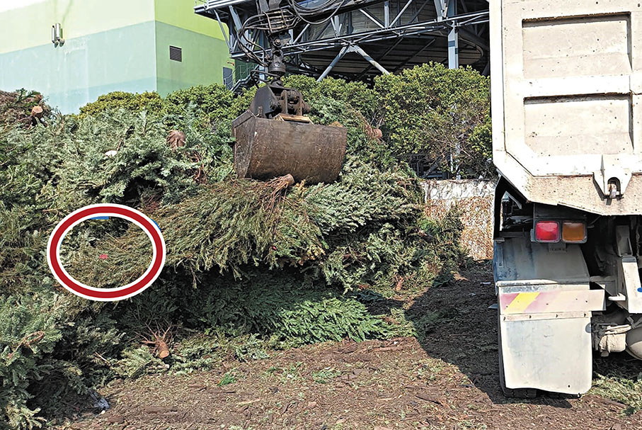 (香港文匯報 記者 文禮願)香港復常後首個聖誕節眨眼過去,各大商場屋苑陸續清除聖誕裝飾,香港文匯報發現有巨型聖誕樹真樹近日大規模被傾倒在新界堆填區。特區政府一直推動回收計劃,並於2021年在屯門成立園林廢物回收中心Y·PARK [林·區],回收天然聖誕樹或園林樹木,但有園藝業界人士向香港文匯報表示,Y·PARK對回收物十分挑剔,聖誕樹必須清理得非常乾淨,樹身即使只掛上一小片膠帶或花瓣也被拒收,園藝界為免麻煩,一律將完好無缺的聖誕樹傾倒堆填區,有違環保原則,促請Y·PARK酌情放寬回收標準。