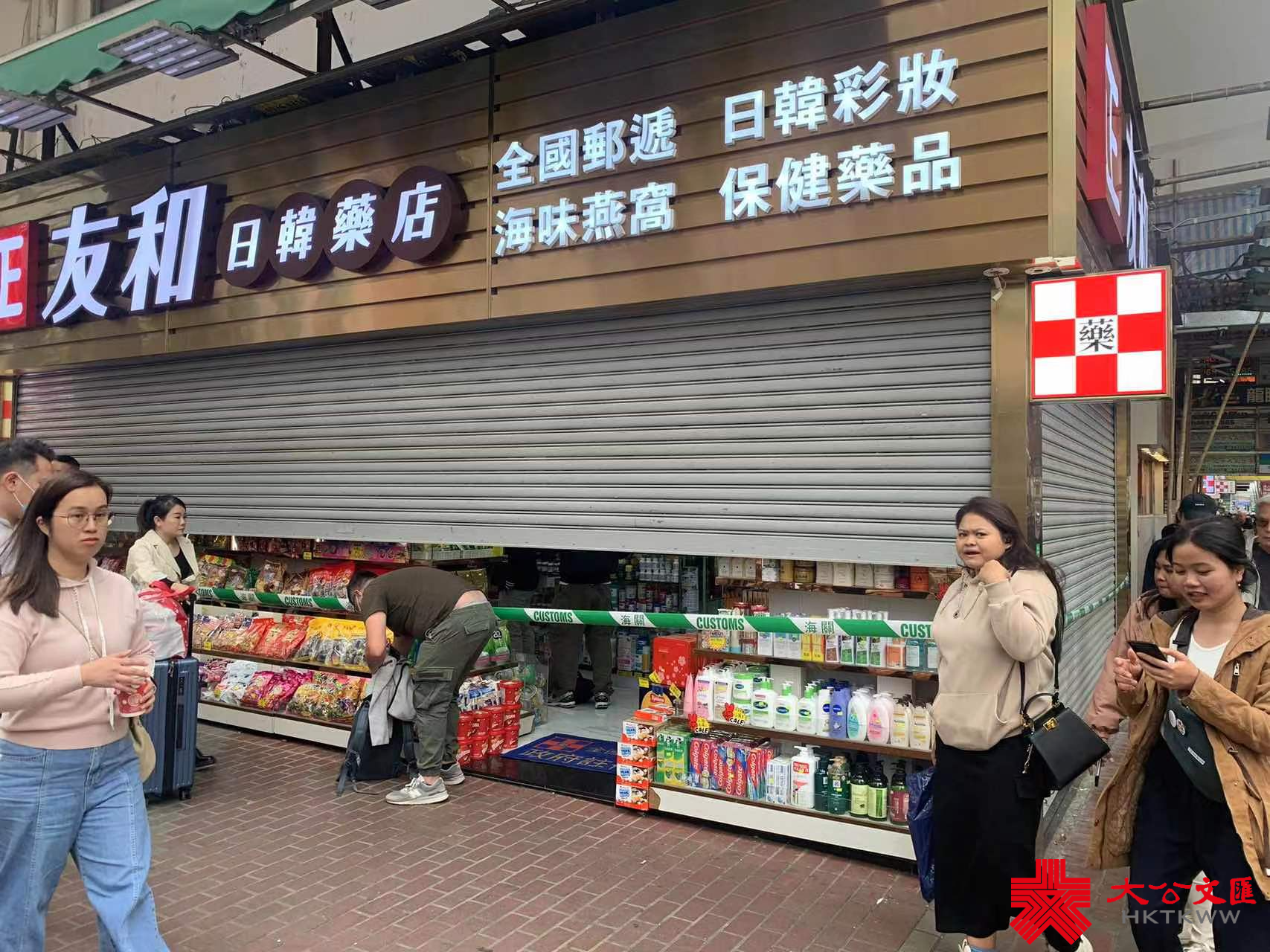 大公文匯全媒體報道,旺角亞皆老街一藥店今日(14日)有海關人員到場調查,疑似涉嫌以欺詐手段進行銷售。大公文匯全媒體記者在現場看到,海關人員將店舖圍封,進行調查,暫時未知事件詳情。