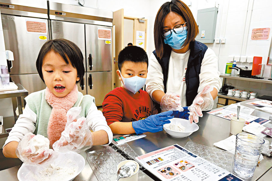 透過參加社區客廳的興趣小組,梁女士的社交圈子也得以擴闊。如剛過去的冬至,她便與其他使用深水埗社區客廳服務的家庭一同製作湯圓,本月初也參加了製作朱古力蛋糕的活動。不同家庭日常也可在備餐間一同做飯。