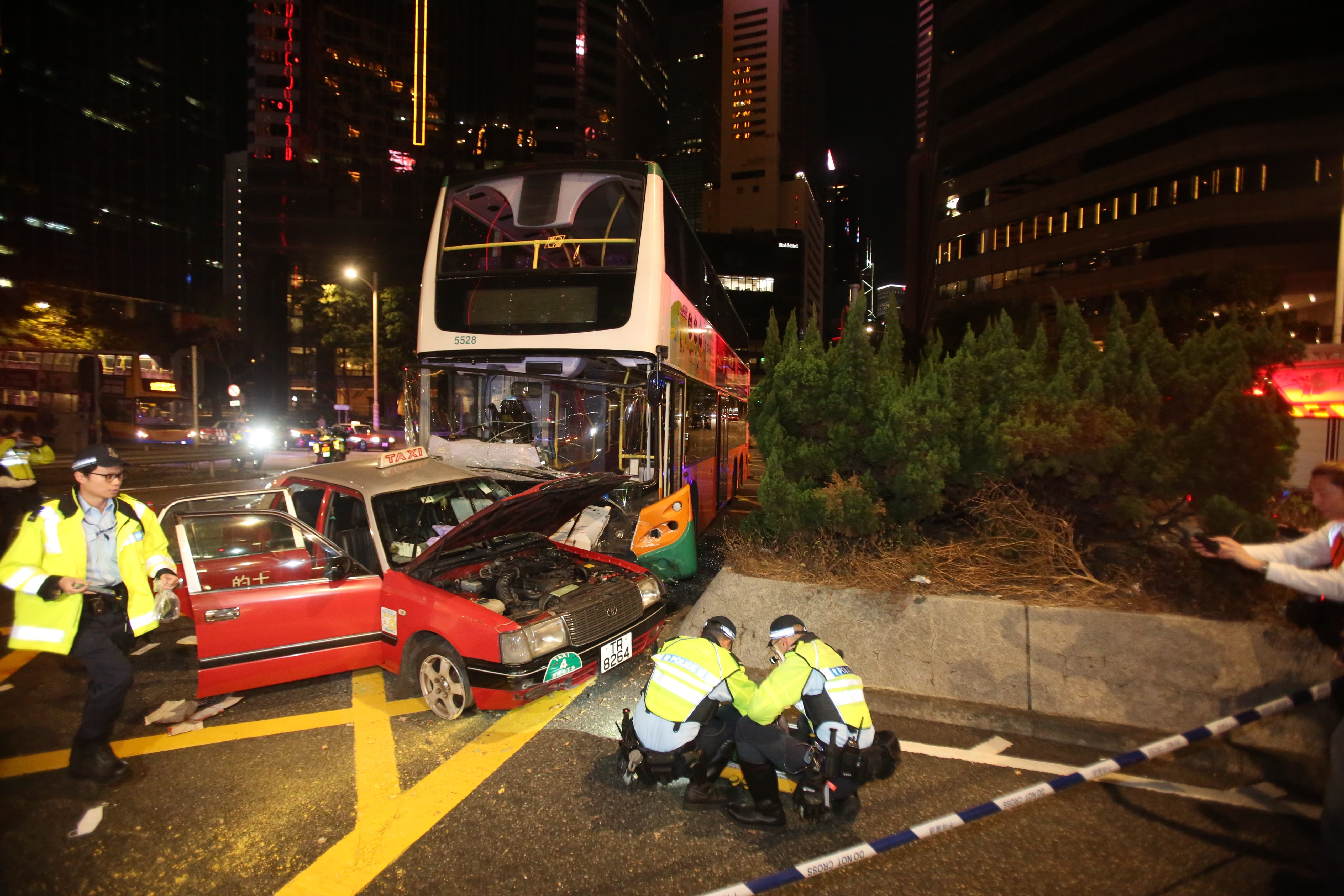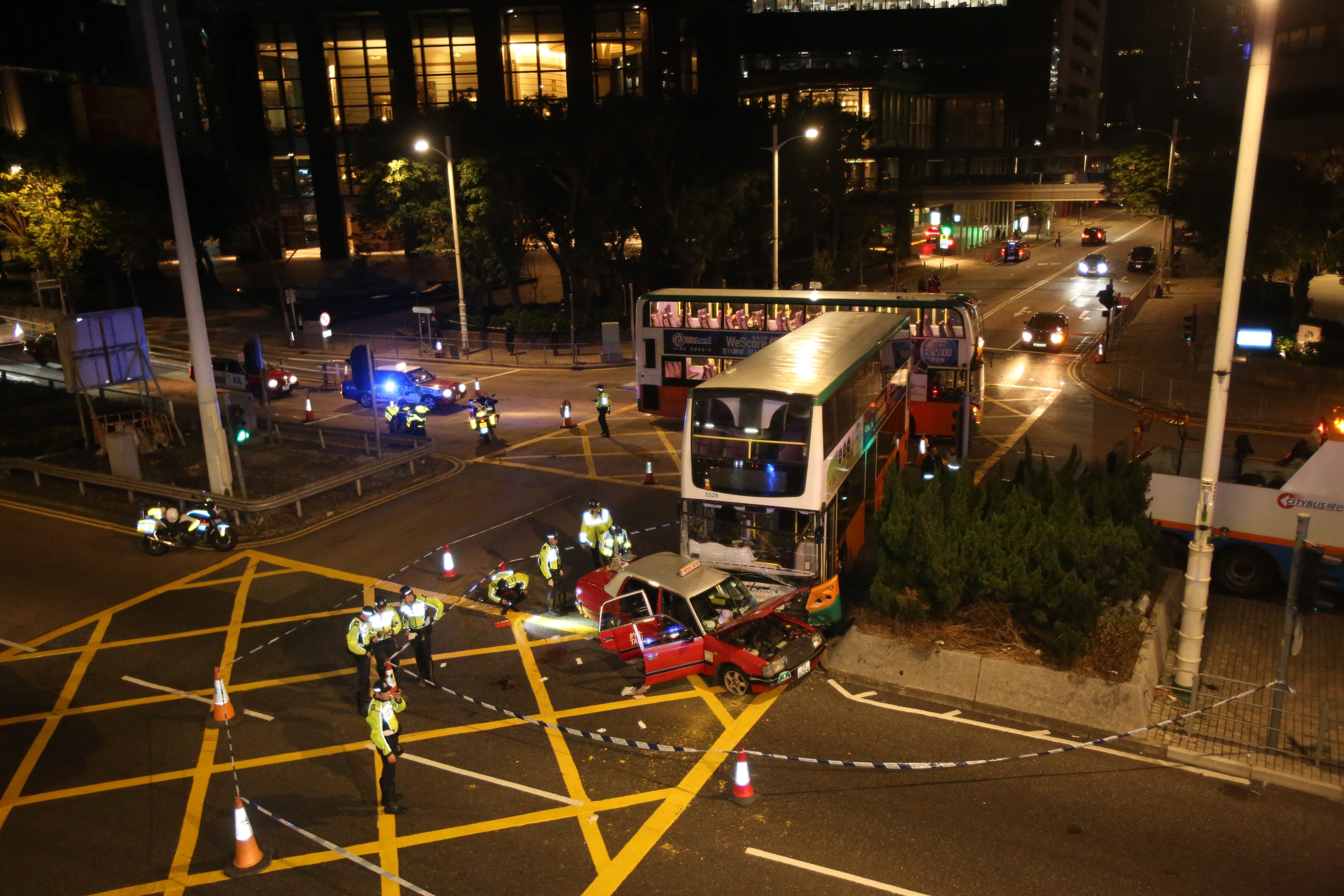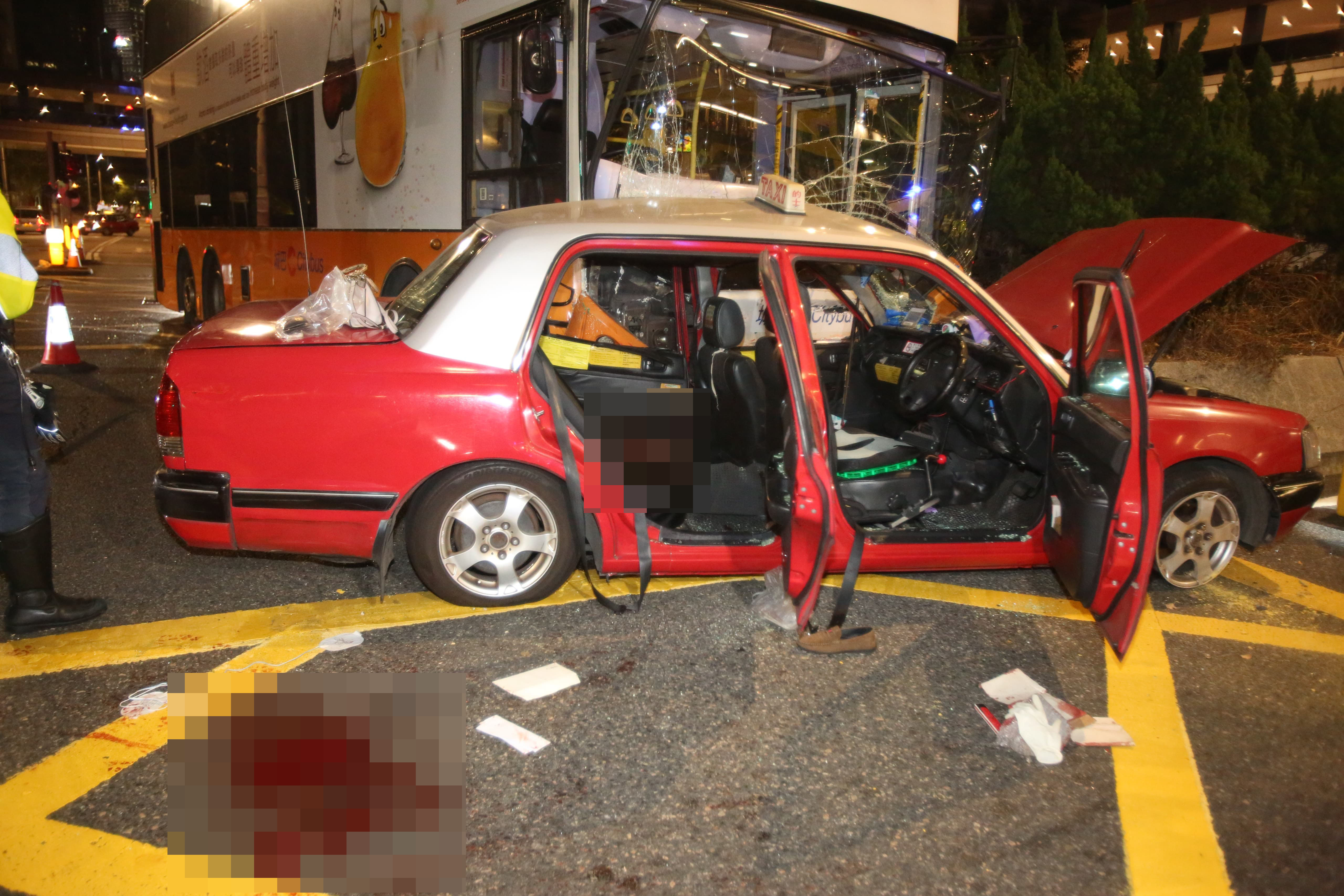 該名的士司機、59歲的士男乘客及47歲的士女乘客被困車內,由途人救出。兩名乘客頭部嚴重受傷,女乘客昏迷被送往律敦治醫院,並於晚上10時08分被證實死亡;男乘客昏迷被送往瑪麗醫院,並於晚上11時18分被證實死亡。的士司機則清醒被送往律敦治醫院治理,其後被轉送東區尤德夫人那打素醫院。