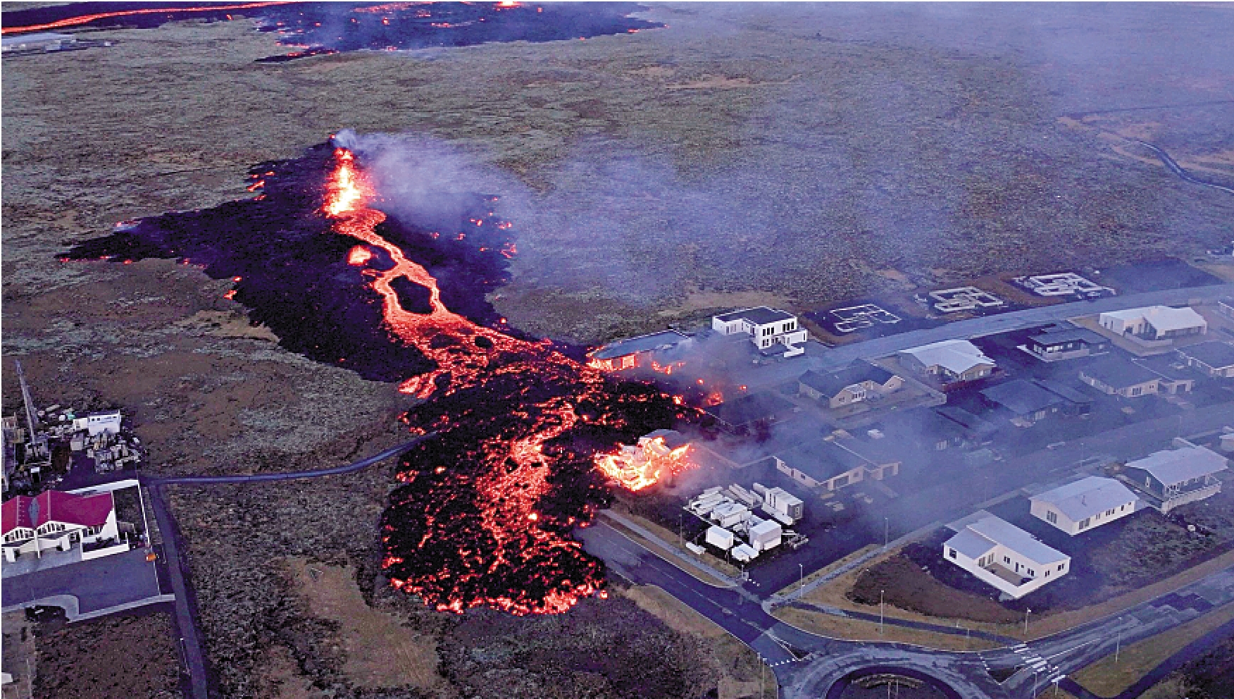 大公報綜合BBC、法新社報道:當地時間14日,冰島西南部雷克雅內斯半島格林達維克鎮附近的火山再次噴發,滾燙的熔岩衝破小鎮之前建立的屏障,湧入並吞噬建築,導致多棟房屋起火,居民要連夜撤離。冰島當地媒體稱,這是「黑暗的一天」。冰島總統則在電視講話中表示,隨着火山的甦醒,雷克雅內斯半島迎來震盪時期。