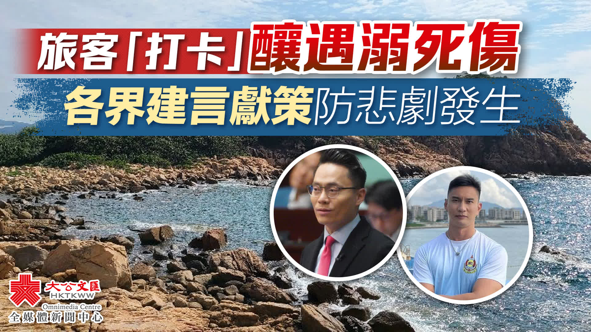 (大公文匯全媒體 記者 王俊傑)石澳日前發生遇溺悲劇,造成兩死一傷。警方初步懷疑57歲內地女旅客在岸邊「打卡」失足,被海浪捲走,其胞兄及胞弟落水救人不果,姊弟兩人不幸身亡,兄長腳傷送院。社會各界關注事件,期望特區政府加強教育,推廣水上安全,避免同類悲劇發生。