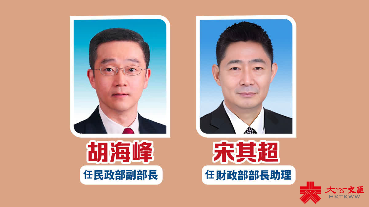 據新華社消息,國務院任免國家工作人員。任命宋其超為財政部部長助理;任命胡海峰為民政部副部長;任命郝軍輝為國家消防救援局政治委員。免去田學斌的水利部副部長職務;免去徐平的國家消防救援局政治委員職務。
