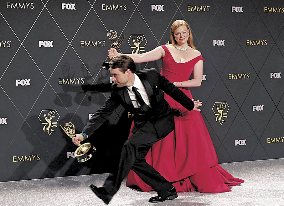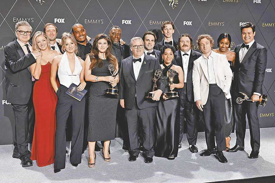 一眾荷里活演員出席延後4個月終於舉行的艾美獎頒獎典禮。HBO劇集《傳媒家族繼承人》(Succession)、Disney+人氣劇《大熊餐廳》( The Bear)與Netflix作品《齮齕人生》(Beef)延續頒獎季強勁勢頭,橫掃各類別獎項。
