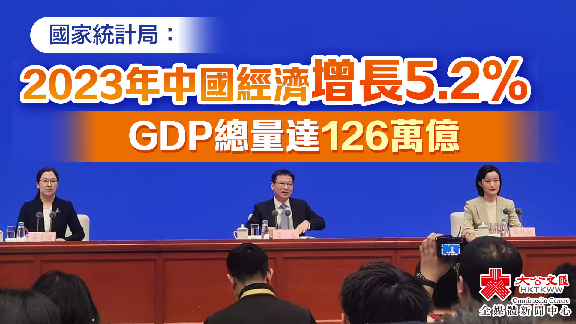 (大公文匯網記者 張帥、海巖 北京報道)今日(1月17日),2023年中國經濟年報出爐。初步核算,去年全年國內生產總值(GDP)按不變價格計算,比上年增長5.2%。分季度看,一季度同比增長4.5%,二季度同比增長6.3%,三季度同比增長4.9%,四季度同比增長5.2%。全年GDP總量達到126萬億元人民幣。