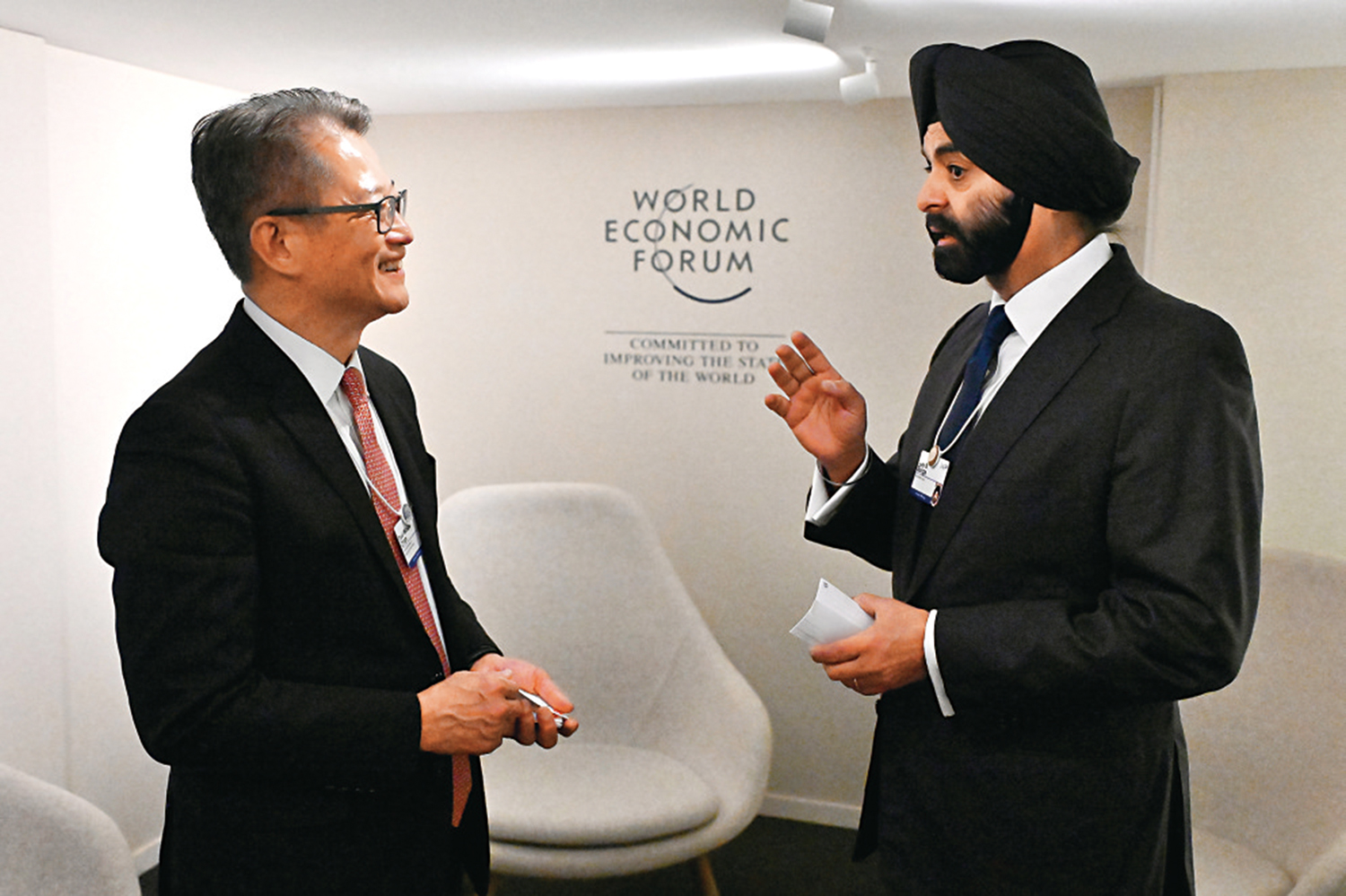 財政司司長陳茂波繼續在瑞士達沃斯世界經濟論壇年會的行程,日前(達沃斯時間1月16日)與世界銀行行長彭安杰會面,雙方就加強綠色和可持續項目的投融資、推動區域的數字化進程、提升南方國家協作,以及推動區域以至全球經濟更普惠包容發展等課題交換意見。