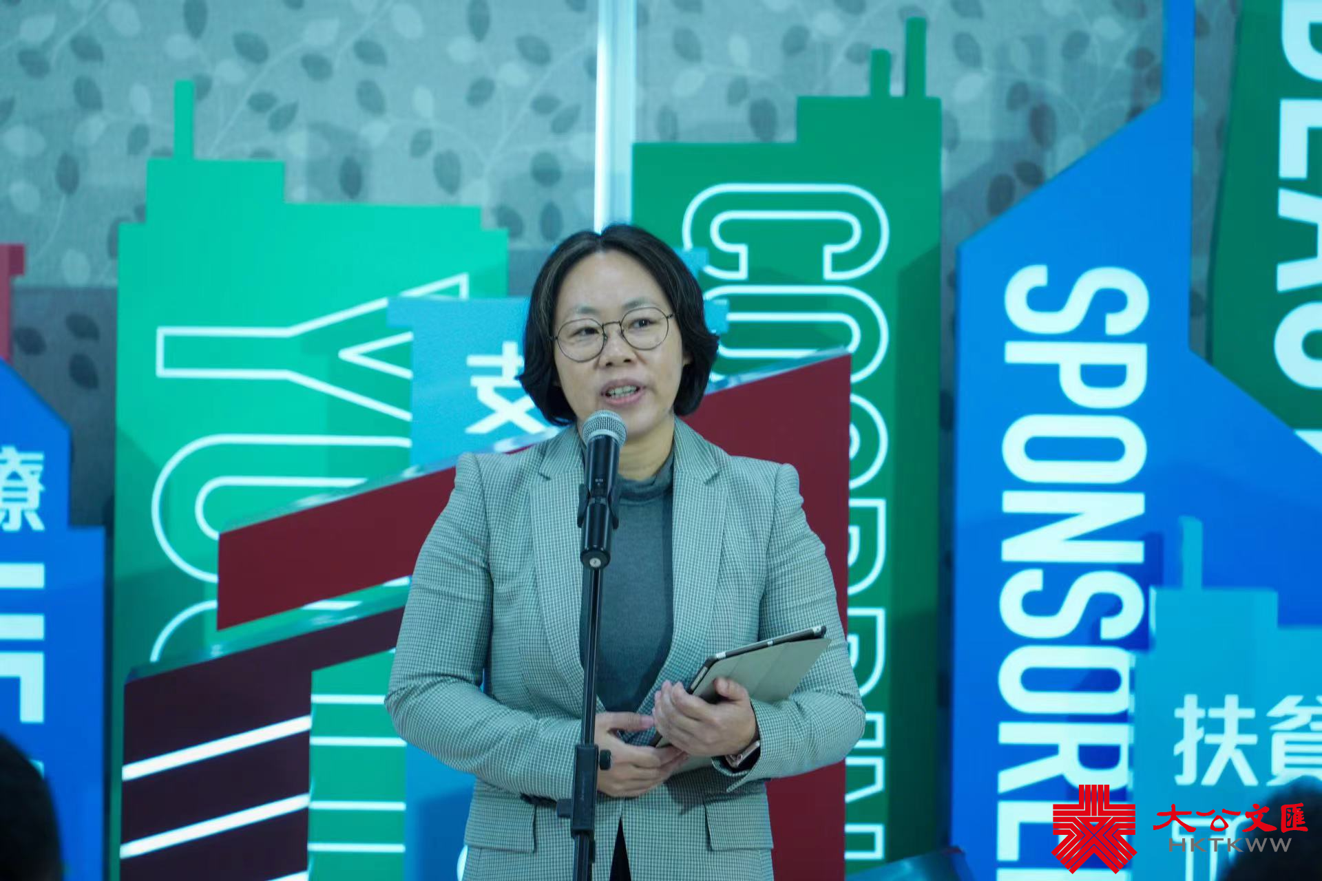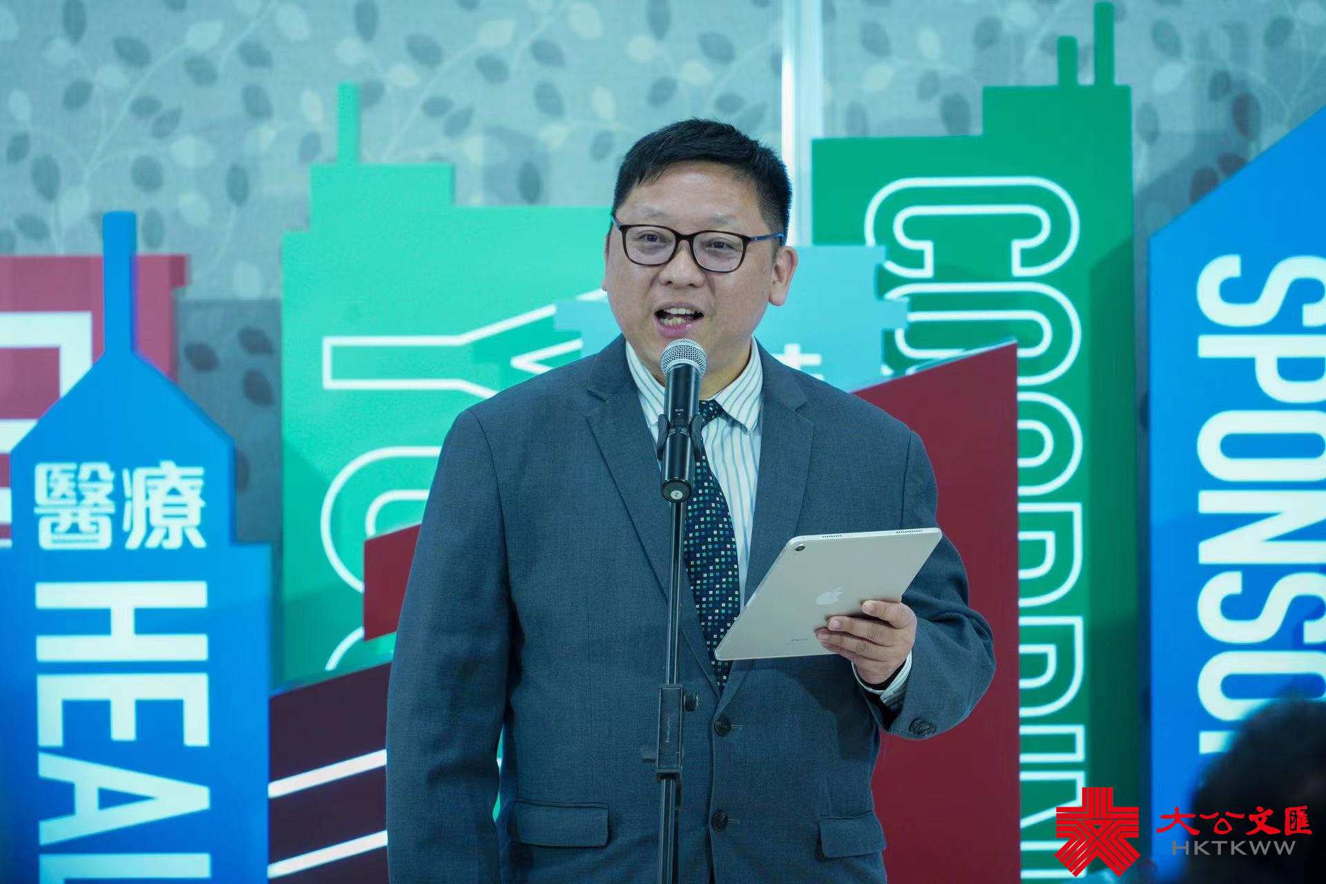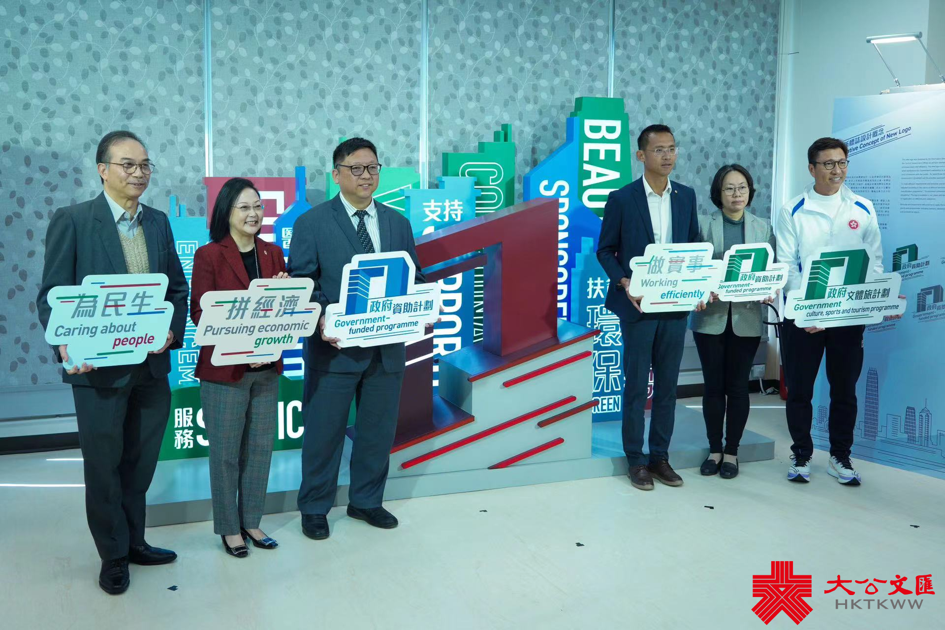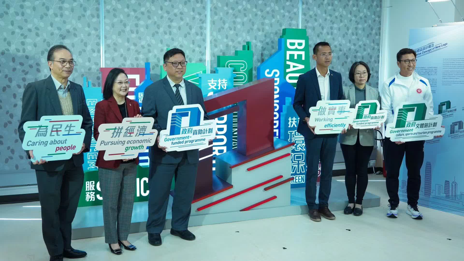 (大公文匯全媒體記者 李九歌)政府新聞處設計新標誌,以政府總部建築為主體,數據表達政府專業高效的元素,沿用「門常開」的設計,象徵政府秉持開明開放的態度,積極與市民溝通和聯繫。政府新聞處處長陳偉偉今日(18日)主持介紹新宣傳標誌和相關資助項目的活動。九龍樂善堂總幹事劉愛詩、聖公會福利協會有限公司總幹事劉冼靜儀、利民會總幹事馮祥添及體育專員黃德森亦出席,分別講述政府支持項目深水埗社區客廳、元朗東頭「同心村」過渡性房屋項目、「情緒通」18111精神健康支援熱線和大型體育活動的情況。