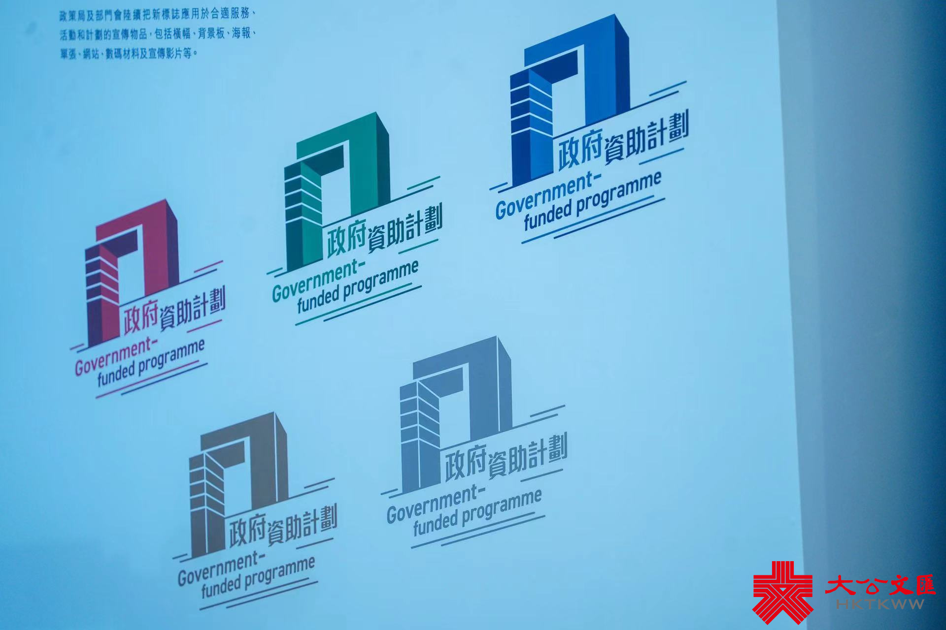 據悉,新標誌的半立體和斜體設計呈現政府活力,積極回應市民不同需要。有紅色、綠色、藍色組合,亦有金色和銀色設計,以適用於不同印刷品。下方則寫有中英文雙語的「政府資助計劃」文字。