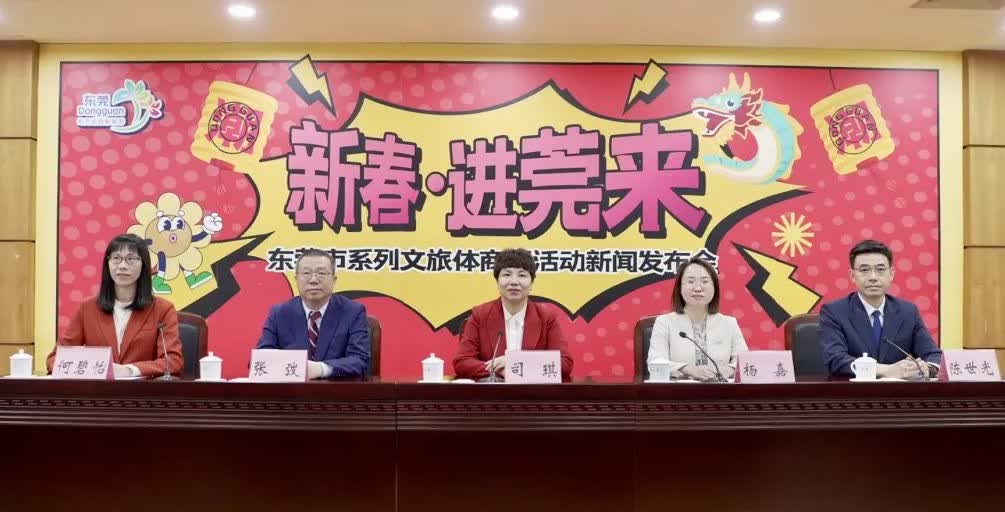 1月17日,「新春•進莞來」2024年東莞市系列文旅體商貿活動新聞發布會在市會議大廈舉行。市文廣旅體局黨組書記、局長司琪,市文廣旅體局黨組成員、副局長楊嘉,市城市管理局黨組成員、副局長陳世光,市商務局黨組成員、副局長張弢出席發布會,介紹「新春•進莞來」系列文旅體商貿活動的總體安排,並對現場媒體記者所提出的相關問題進行回覆。