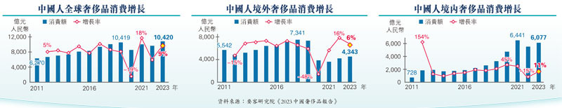 值得注意的是,2023年,中國人境內奢侈品消費並沒有因為旅遊人數比疫情期間增加而造成更多消費外流,佔比同比提高了1個百分點,至58%,可見內地促消費各項政策獲得卓越成效。