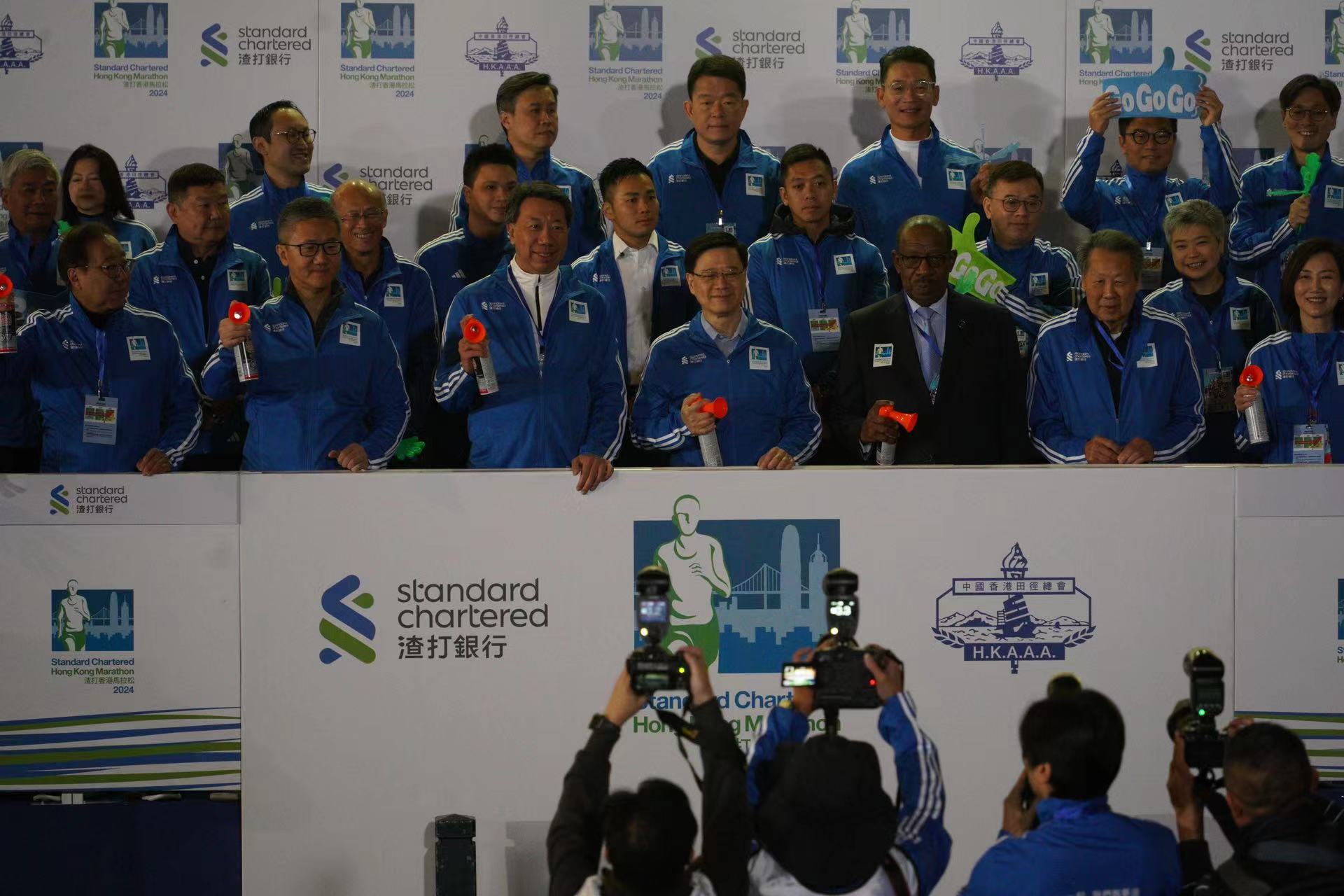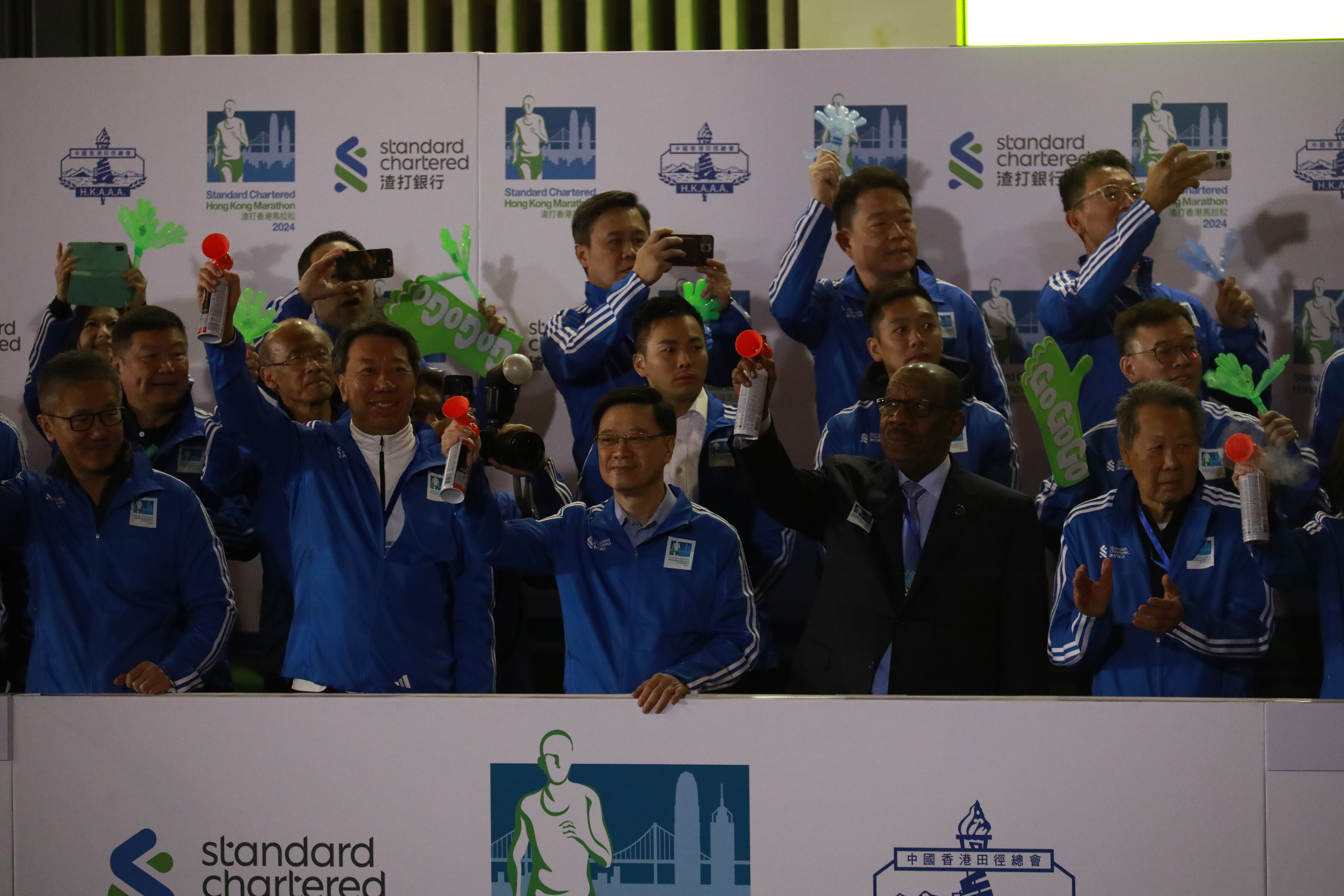 (大公文匯全媒體 記者 王俊傑)2024渣打馬拉松今早(21日)5時40分開跑。相比上屆渣馬,今早氣溫約17度,濕度64%,天氣清涼,非常適合長跑賽事舉行。全馬主禮嘉賓包括李家超、蕭澤頤等人。