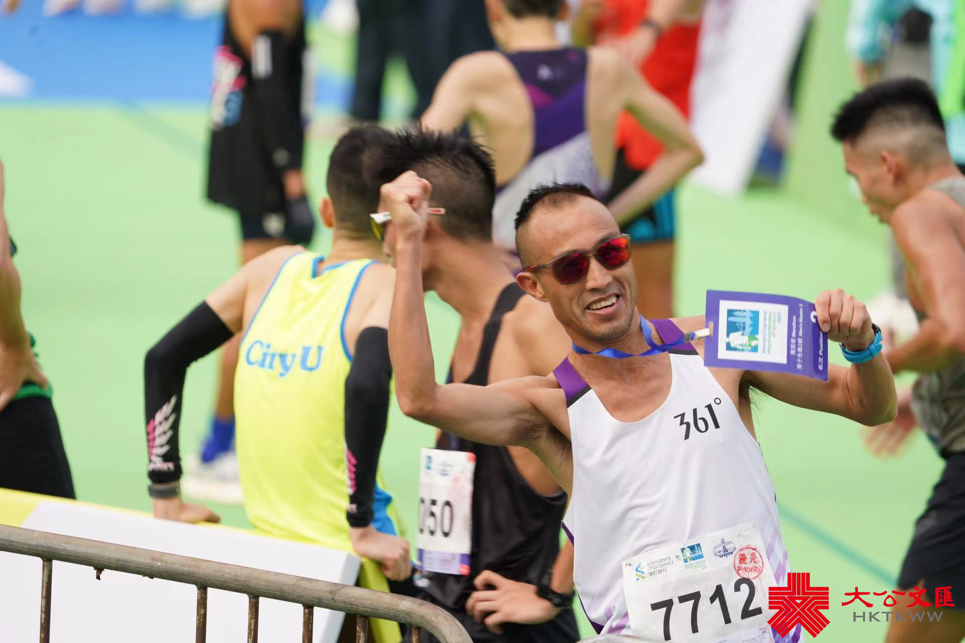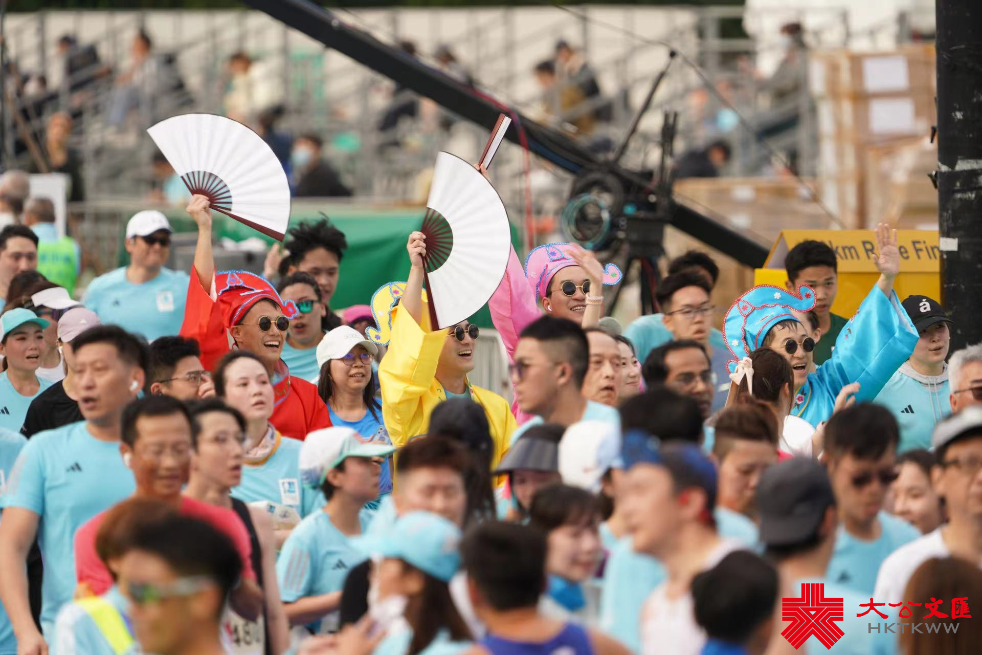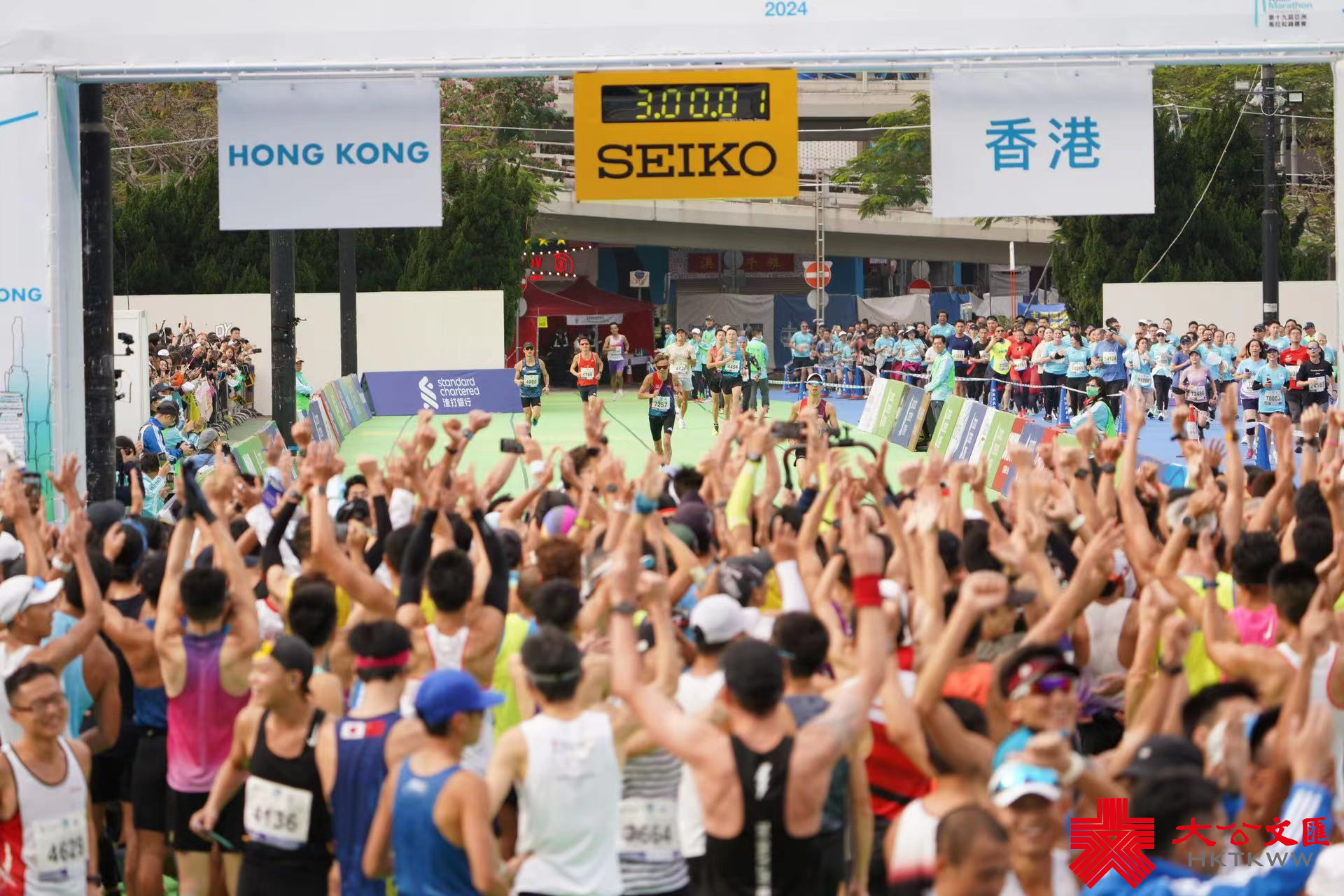 大公文匯全媒體報道,2024渣打馬拉松半馬挑戰組今早(21日)5時40分開跑,各組別跑手陸續到達維園終點。男子組全馬拉松賽事在3小時內能完成賽事的跑手,可以獲得一萬元,成為「萬金先生」,不少跑手都趕在最後時限大衝刺,爭取萬元獎金。「萬金先生」到達終點後又拍攝大合照,十分興奮。今日亦有不少人身穿特色服裝,「加菲貓」「江南四大才子」等現身跑場,十分吸睛。
