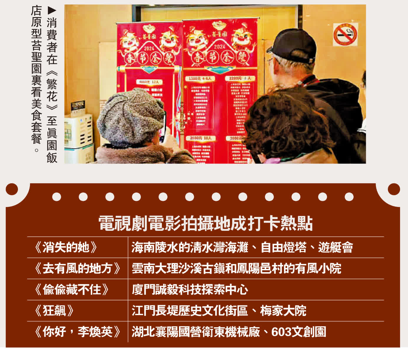 《繁花》以上海為背景,講述了上世紀60至90年代的社會變遷與人物命運。飯店負責人說:「《繁花》已經大結局,但上海的文化發展還在持續,我們會繼續做好這個主題,讓更多消費者能夠感受更多的上海文化。」