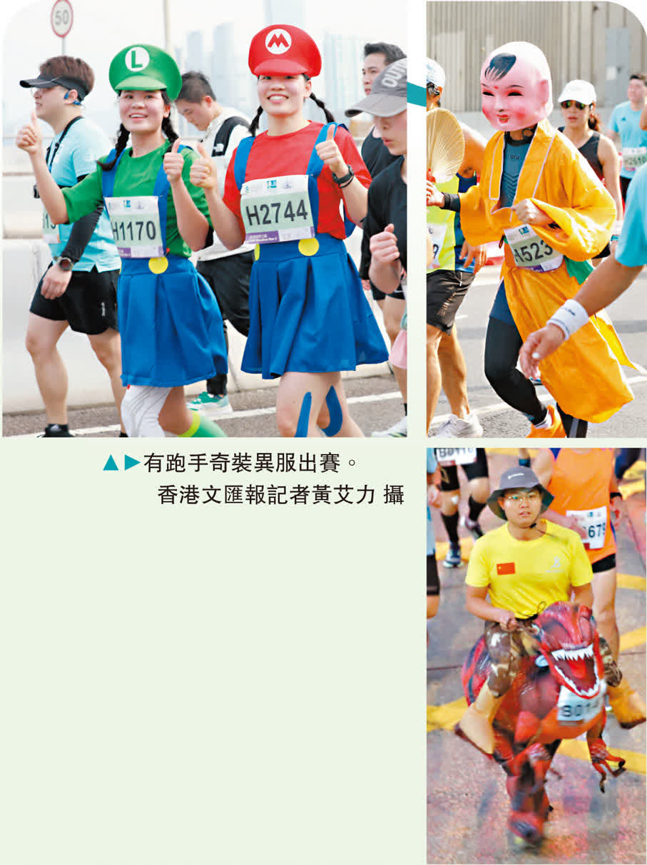 其他跑手則有人戴上大頭佛及穿着和尚袍,亦有人以騎在恐龍上的裝扮參賽,惹來不少驚奇目光。