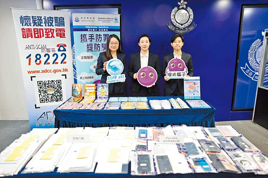 (香港文匯報記者 蕭景源)警方鑑於近年詐騙案件不斷攀升,以港島總區為例,各類型詐騙案甚至佔整體罪案四成半。為此,警方港島總區刑事部由本月8日至21日,聯同轄下四個警區展開主要針對騙案中傀儡戶口持有人、代號「穿雲」的執法行動,其間在全港拘捕219人,他們涉嫌與146宗網上購物騙案、投資騙案、網絡釣魚騙案、電話騙案及求職騙案有關。案件涉及558名受害人,總損失金額超過5億元,當中不乏高學歷及高收入者,有年輕軟件工程師在短短5個月內被騙1,900萬元。