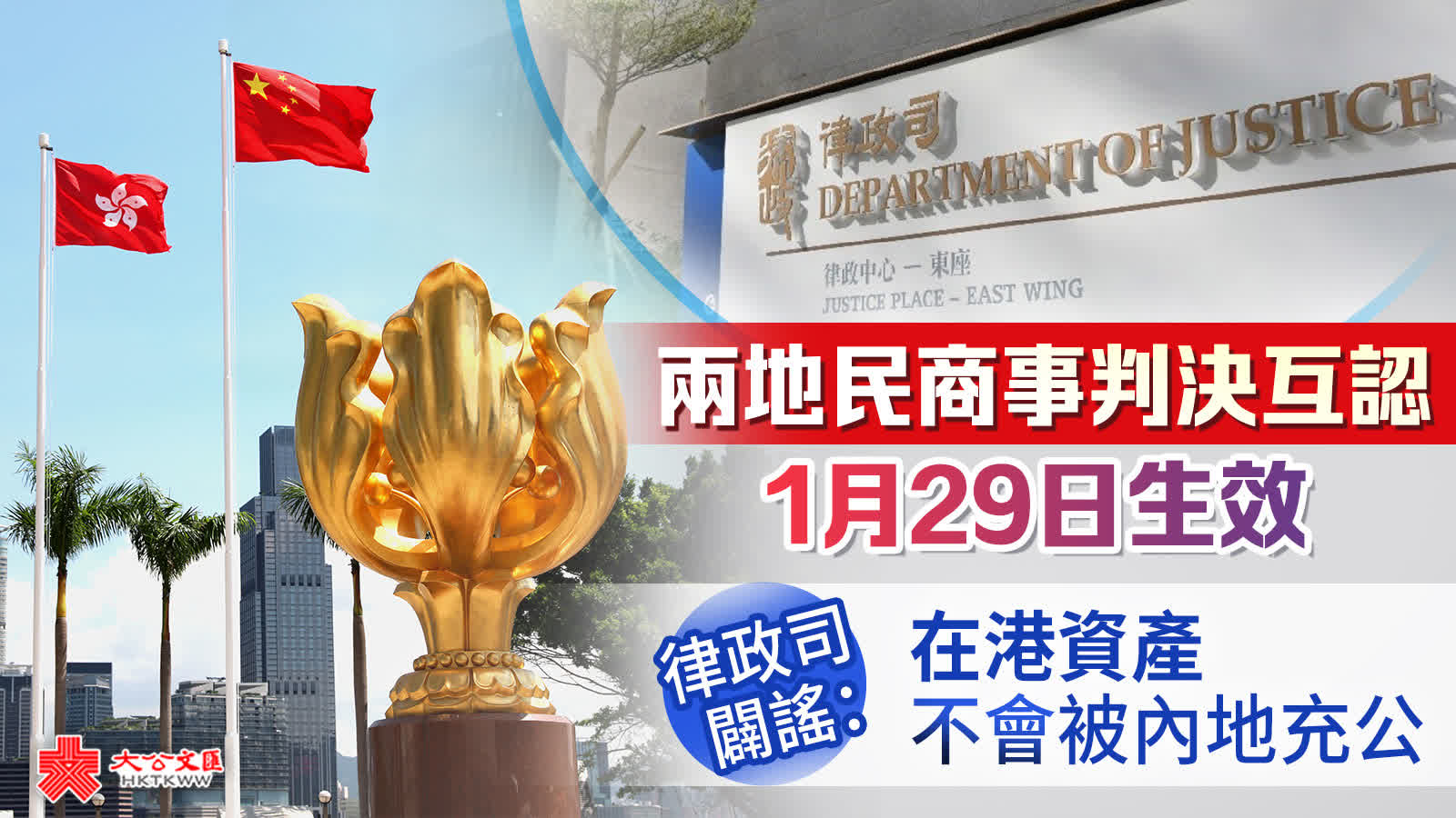 大公文匯全媒體報道,香港與內地推進司法互通,其中一項司法互助安排《關於內地與香港特別行政區法院相互認可和執行民商事案件判決的安排》(《安排》)將於本月29日生效。坊間有擔憂《安排》生效後兩地法院會就案件交換資料,內地的法院判決結果或會自動適用於香港,且在港的資產可被內地直接充公。律政司發言人今日(23日)回應,有關說法屬謬誤,強調有關安排只涉及兩地民商事判決的相互認可和執行,申請執行判決完全由當事人主導。發言人亦重申,在《安排》實施後,內地判決並不會自動在香港生效,在港的資產並不會被內地直接充公。