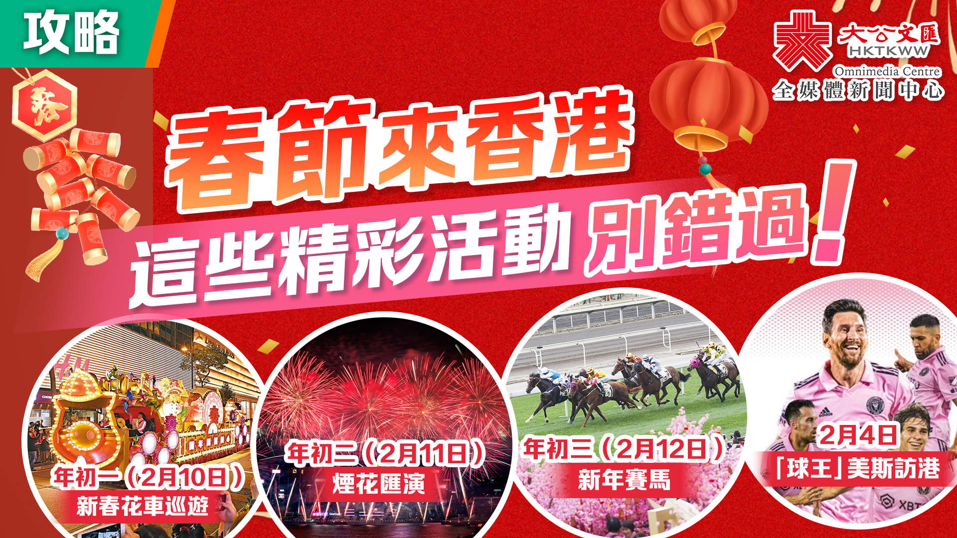 闊別五年的新春花車巡遊,將於大年初一晚在尖沙咀復辦。巡遊以「龍騰香港賀新歲」為主題,共有9輛花車、13支本地表演隊伍及16支國際表演團體參與匯演,其中國際表演隊伍數量是歷年之冠。巡遊觀眾席門票在1月27日發售,票價300至480元。