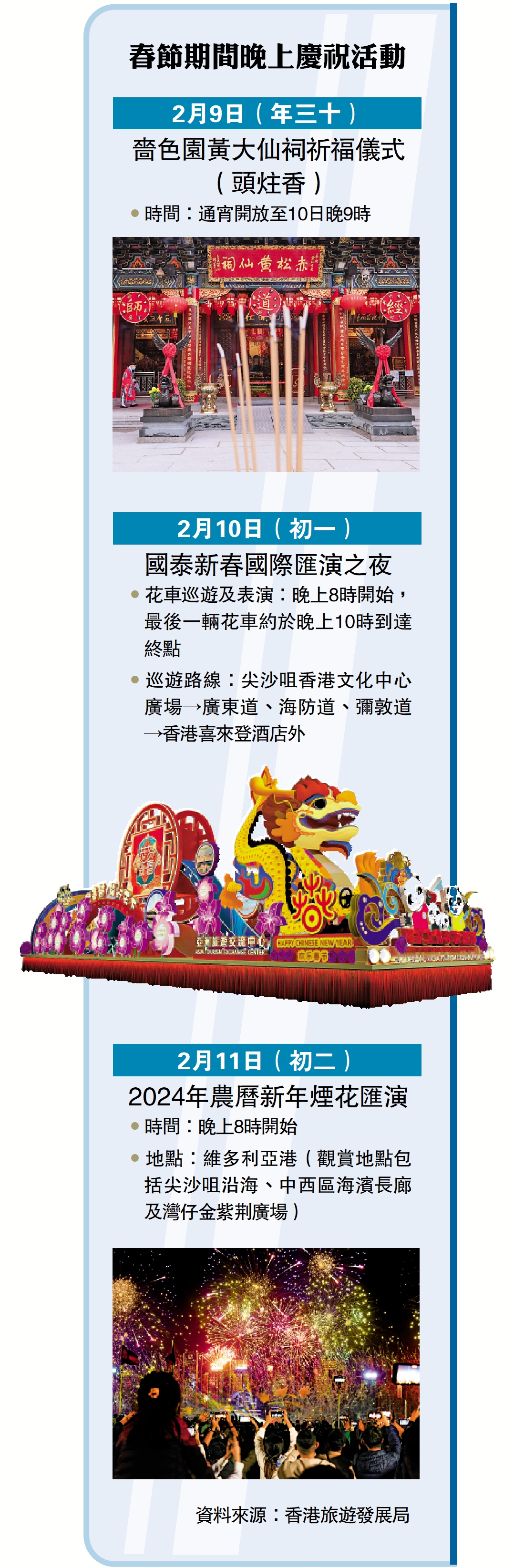 •花車巡遊及表演:晚上8時開始,最後一輛花車約於晚上10時到達終點