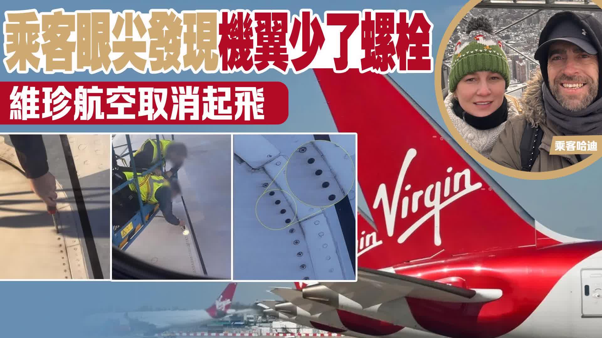 大公文匯全媒體報道,英國維珍航空(Virgin Atlantic)日前一架原定飛往紐約的航班,在起飛前最後時刻取消,竟是機上乘客眼尖發現機翼上少了固定4個螺栓。