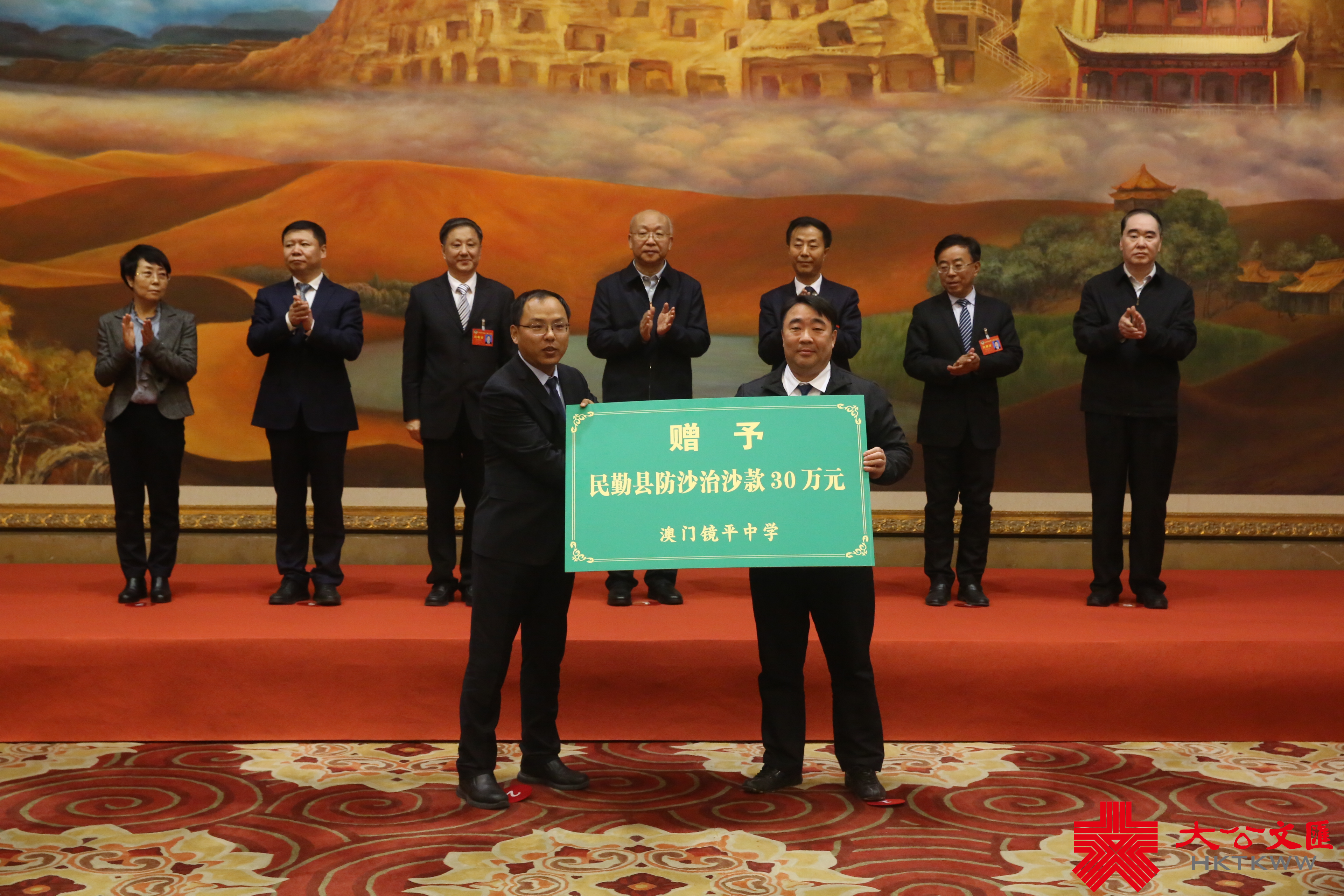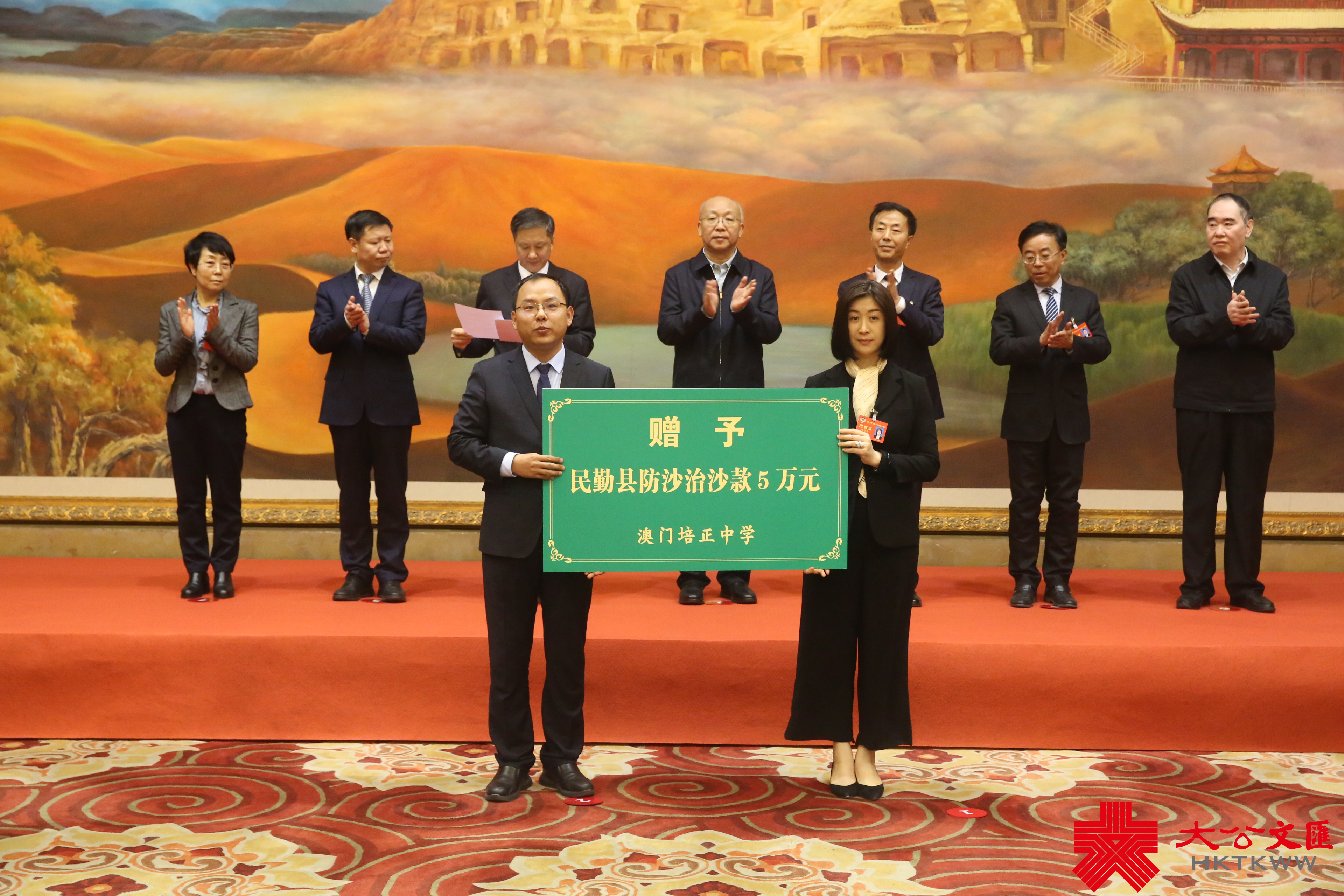(大公文匯網記者 郭濤 甘肅報道)1月23日,正在甘肅蘭州參加政協甘肅省第十三屆委員會第二次會議的甘肅省澳門政協委員何萍萍、鄭國恆代表澳門培正中學、澳門鏡平學校向甘肅民勤捐助35萬元用於當地防沙治沙。