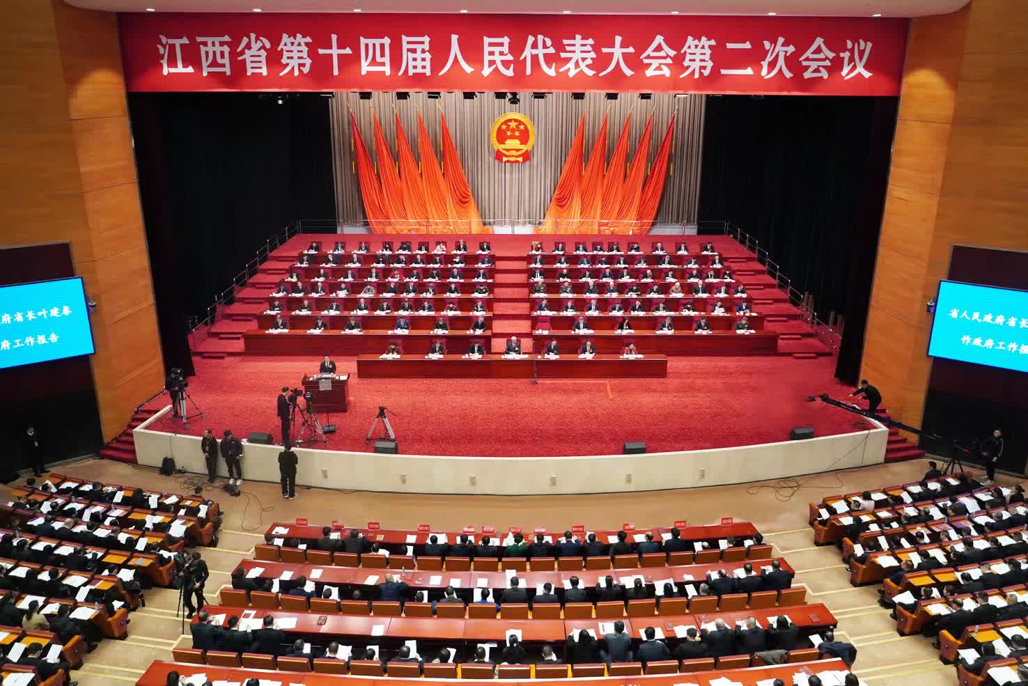 1月23日上午,江西省第十四屆人民代表大會第二次會議在南昌開幕,江西省長葉建春作政府工作報告。