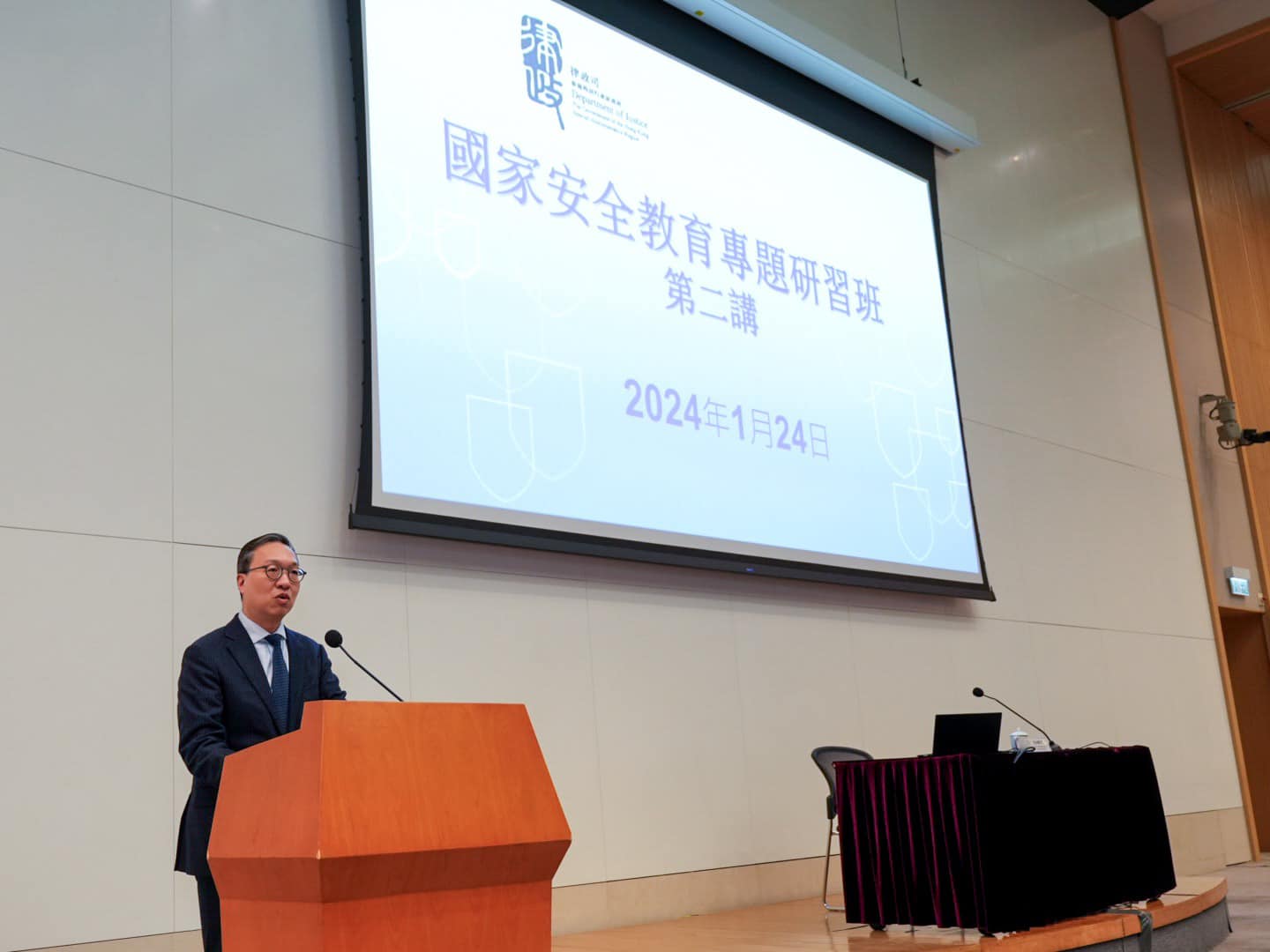 大公文匯全媒體報道,律政司司長林定國今日(24日)在社交專頁發文稱,繼去年9月的第一講後,政府律師國家安全教育專題研習班今日舉行第二講,外交部駐港公署署理特派員李永勝,以「新時代中國國際法實踐與涉港外交」為主題,分享在新時代中國特色社會主義思想引領下,國家在國際法的實踐,以及涉港外交工作如何助力「一國兩制」行穩致遠和香港長治久安。
